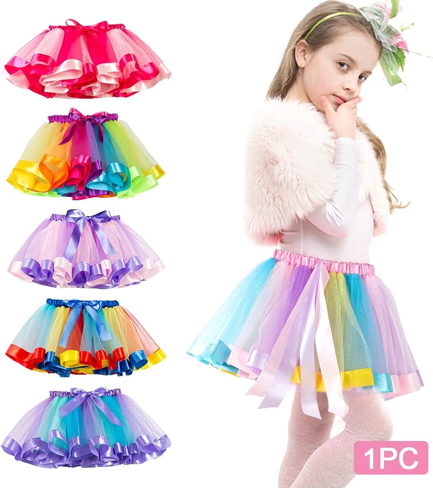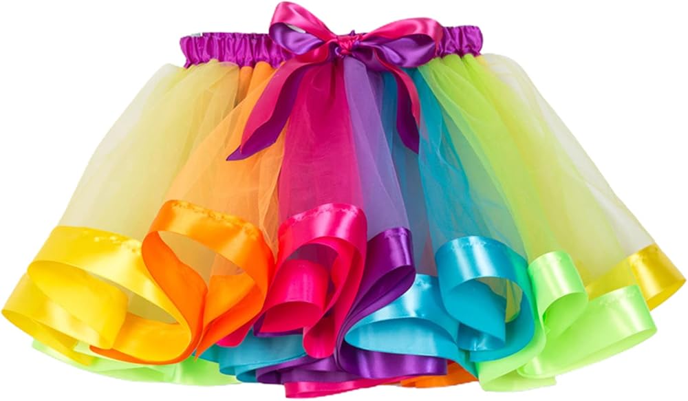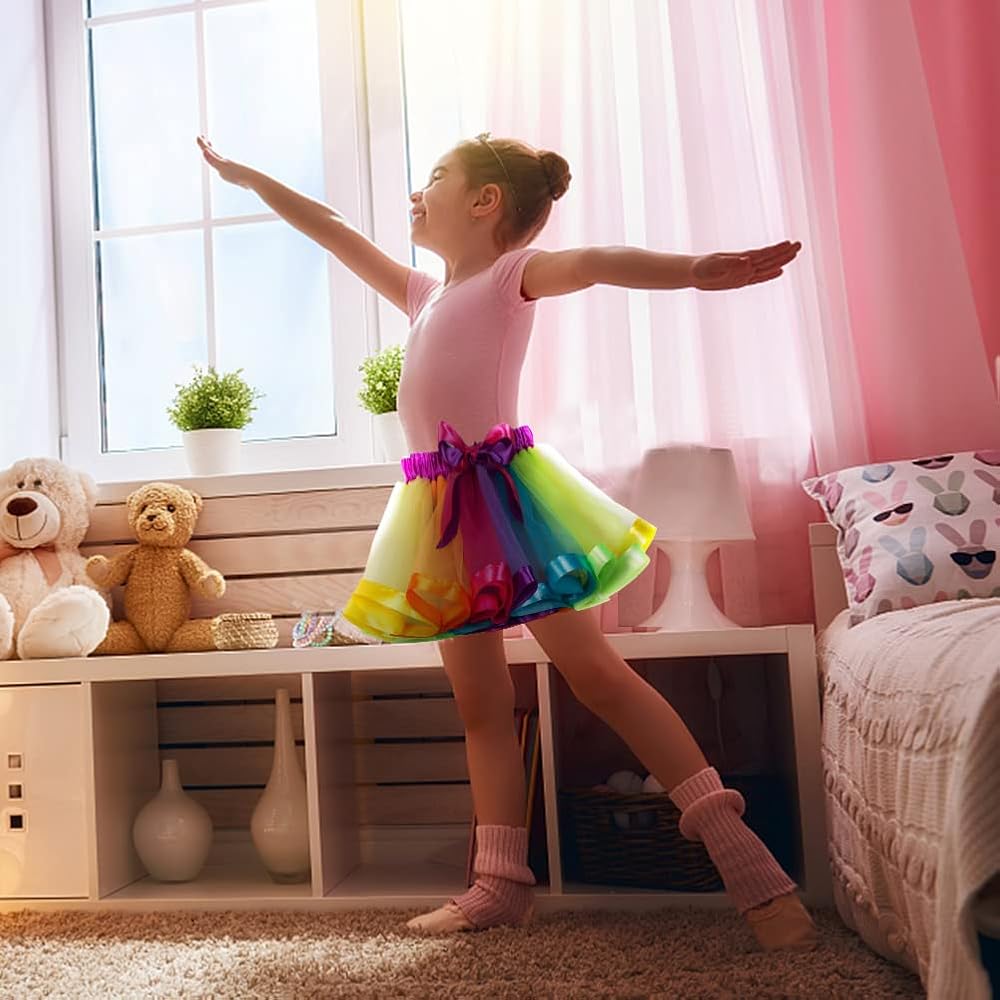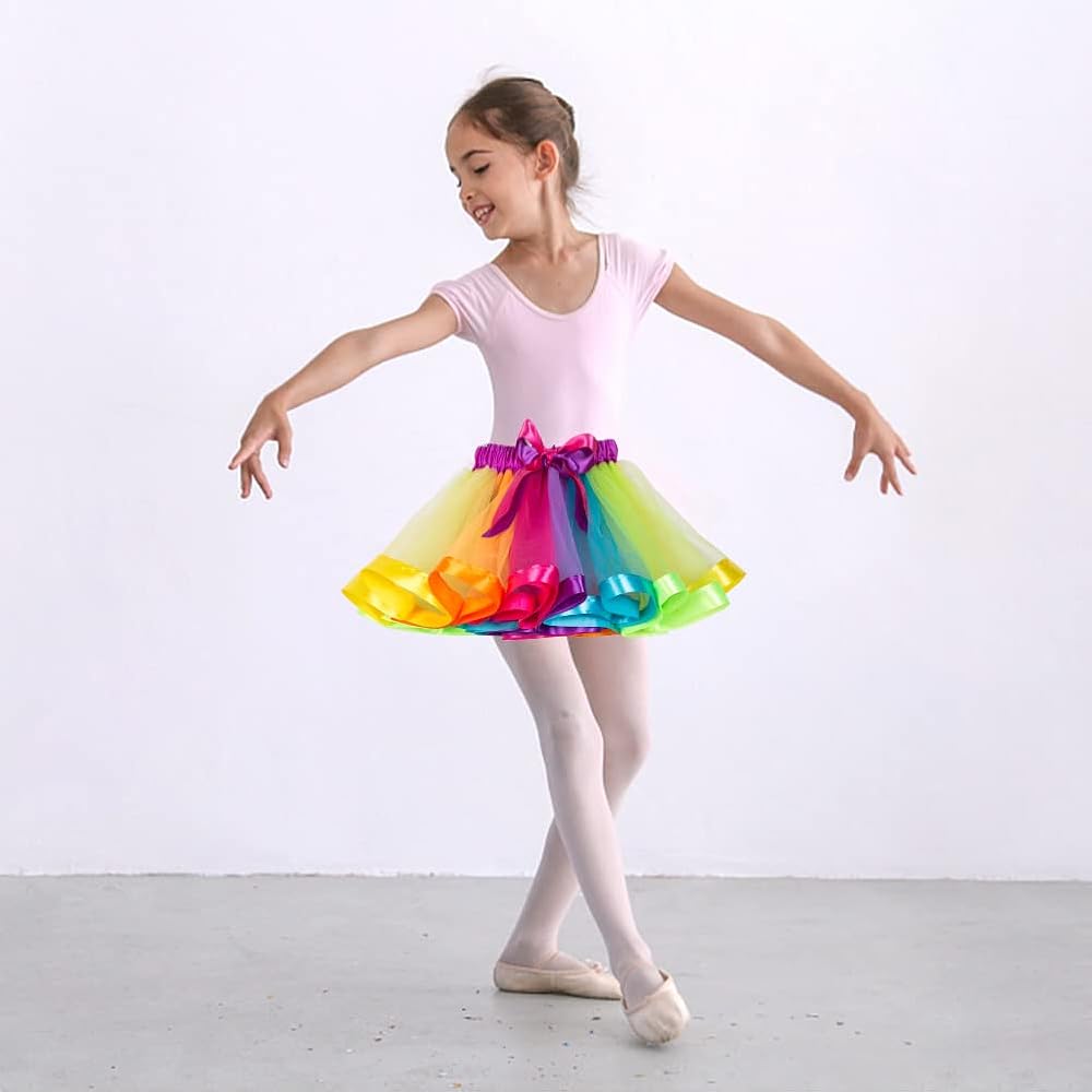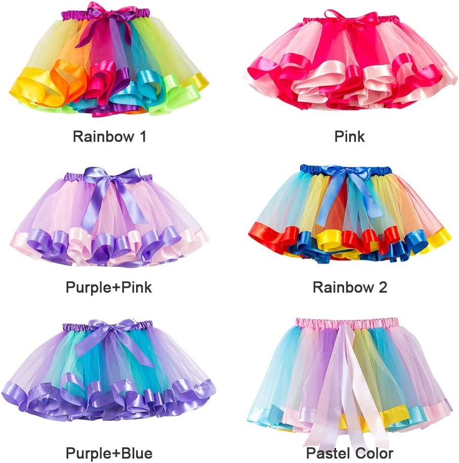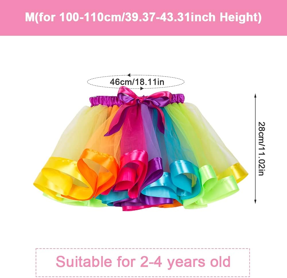 【Cute Design】The tutu skirt for girls adopts bright and dreamy rainbow colors to make your girl more eye-catching, with bow ribbon at the eleastic waist, more cute and fashionable.