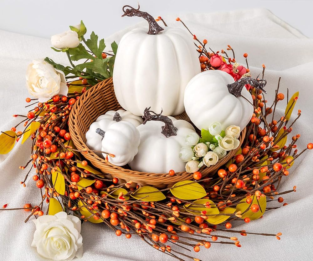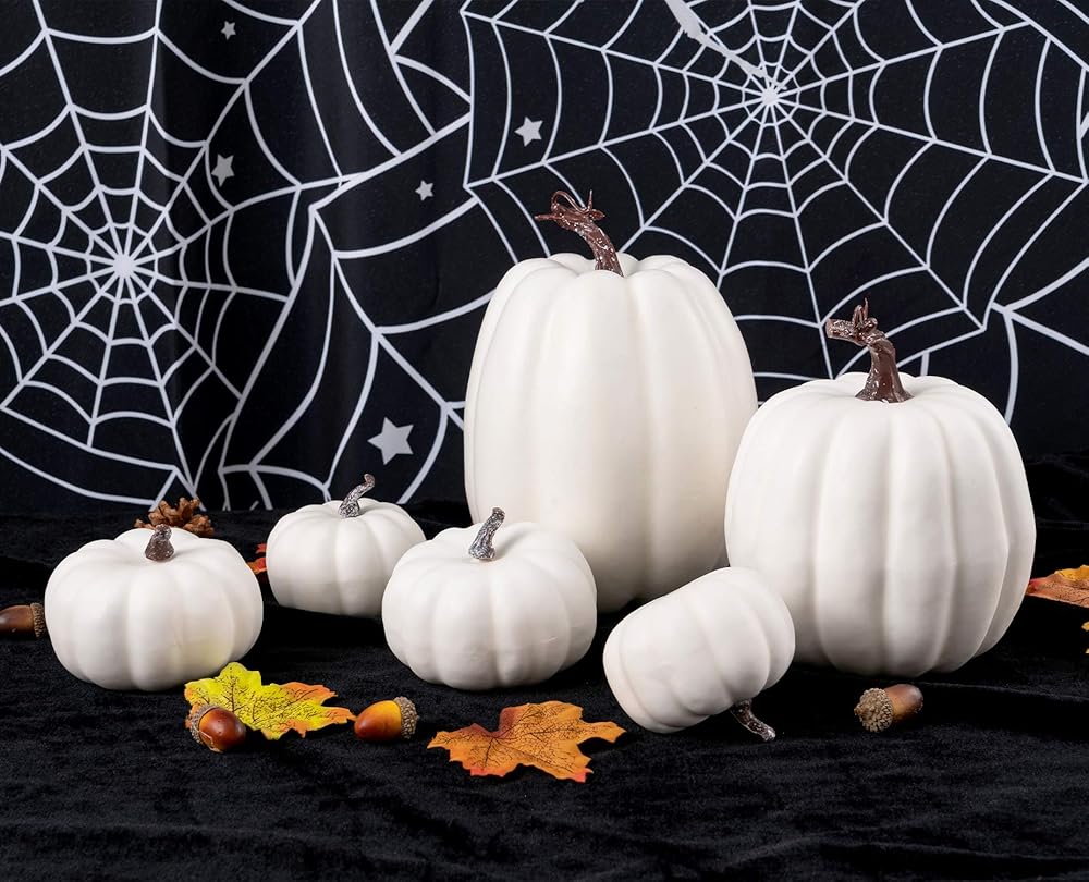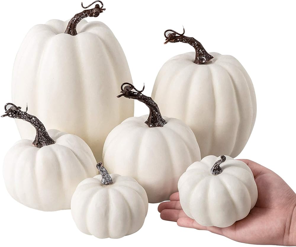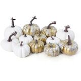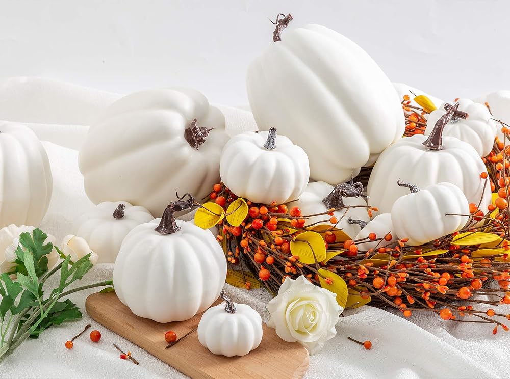 12 قطعة من Oyydecor بأحجام متنوعة من القرع الاصطناعي لتزيين الحصاد والقرع الأبيض والقرع الرغوي المزيف لديكور الخريف والخريف وعيد الشكر وديكورات الهالوين (أبيض، 12 قطعة)