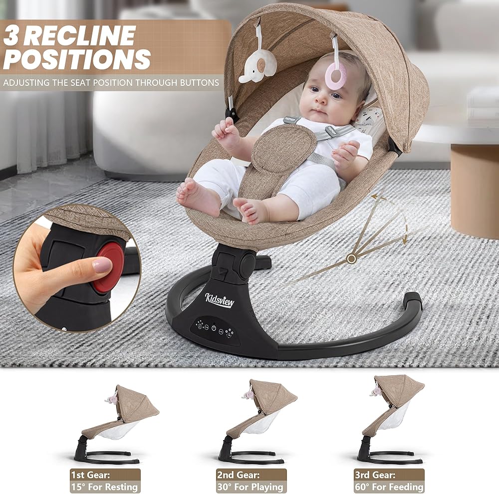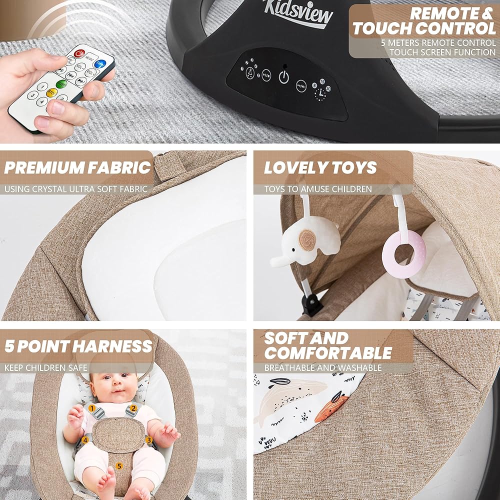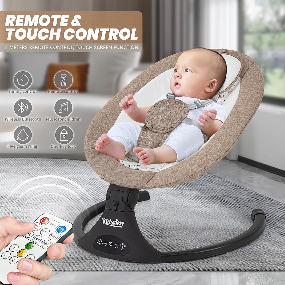 [12 تهويدة وميزات بلوتوث] تتميز أرجوحة الأطفال حديثي الولادة هذه بـ 12 تهويدة لطيفة لتهدئة طفلك حتى ينام. قم بتشغيل أرجوحة طفلك بسهولة باستخدام شاشة اللمس أو جهاز التحكم عن بعد المتضمن. يتيح لك اتصال البلوتوث التحكم في أرجوحة طفلك من مسافة بعيدة، مما يمنحك المرونة والراحة.