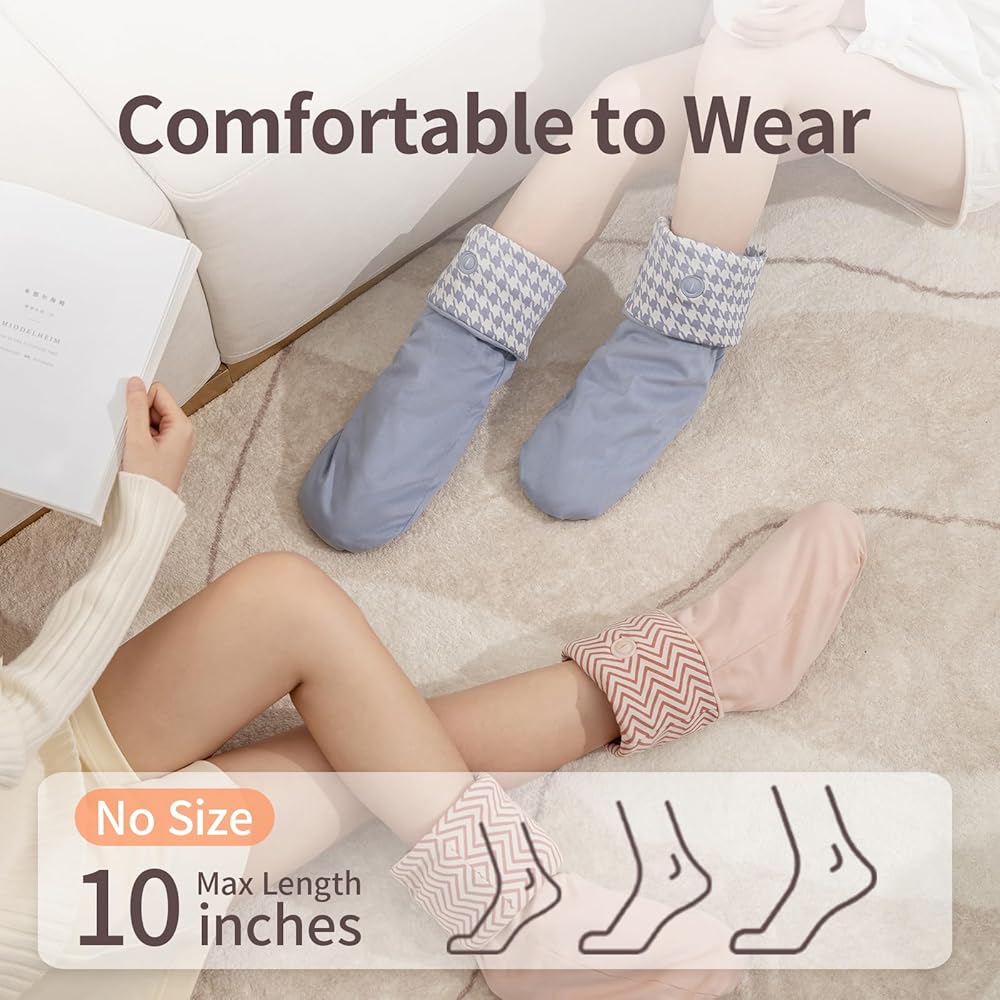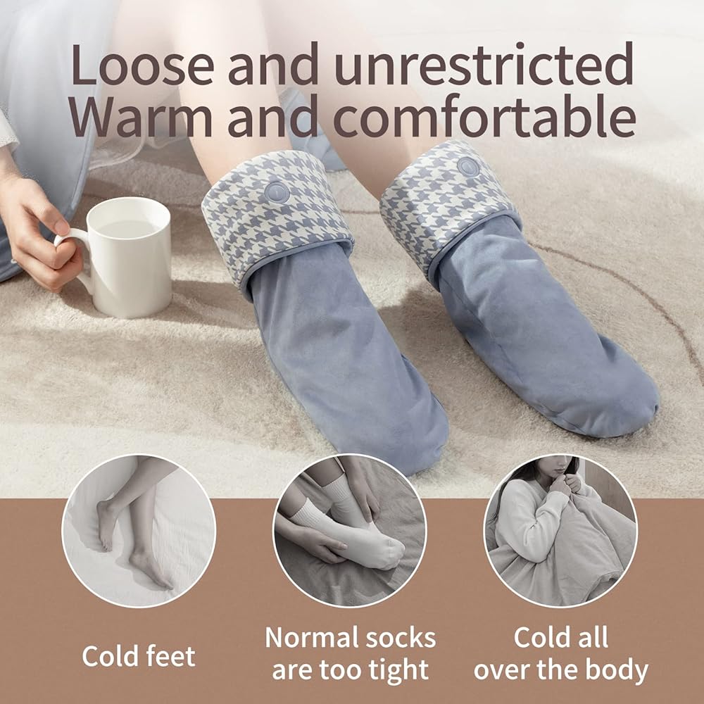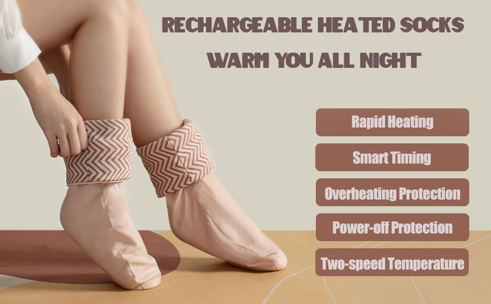 • 🧦🔥🦶【Carbon Fiber Heating Wire, Warm and Safer】 The foot warmer thermal socks use carbon fiber heating wire with far-infrared heating method, which will keeping warm and safer. Overheat protection, power failure protection, flame retardant protection, keep your feet warm all day without any safety hazards.