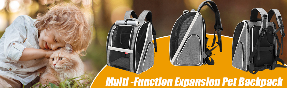 أقصى دوران للهواء ومداخل متعددة: يتميز حامل حقيبة الظهر للكلاب بنوافذ شبكية على الجوانب الأربعة لتحسين تدفق الهواء، بينما تسمح المداخل الأربعة (على الجوانب والأمام والخلف) لحيوانك الأليف بالاستمتاع بالمناظر الخارجية والدخول بسهولة إلى الحامل. بالإضافة إلى ذلك، تأتي مع بساط ناعم قابل للتوسيع لضمان راحة حيوانك الأليف أثناء الرحلة.