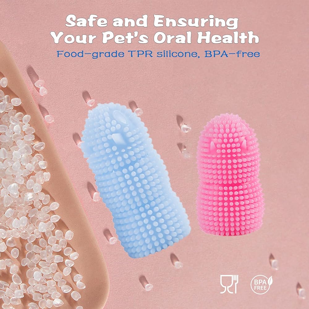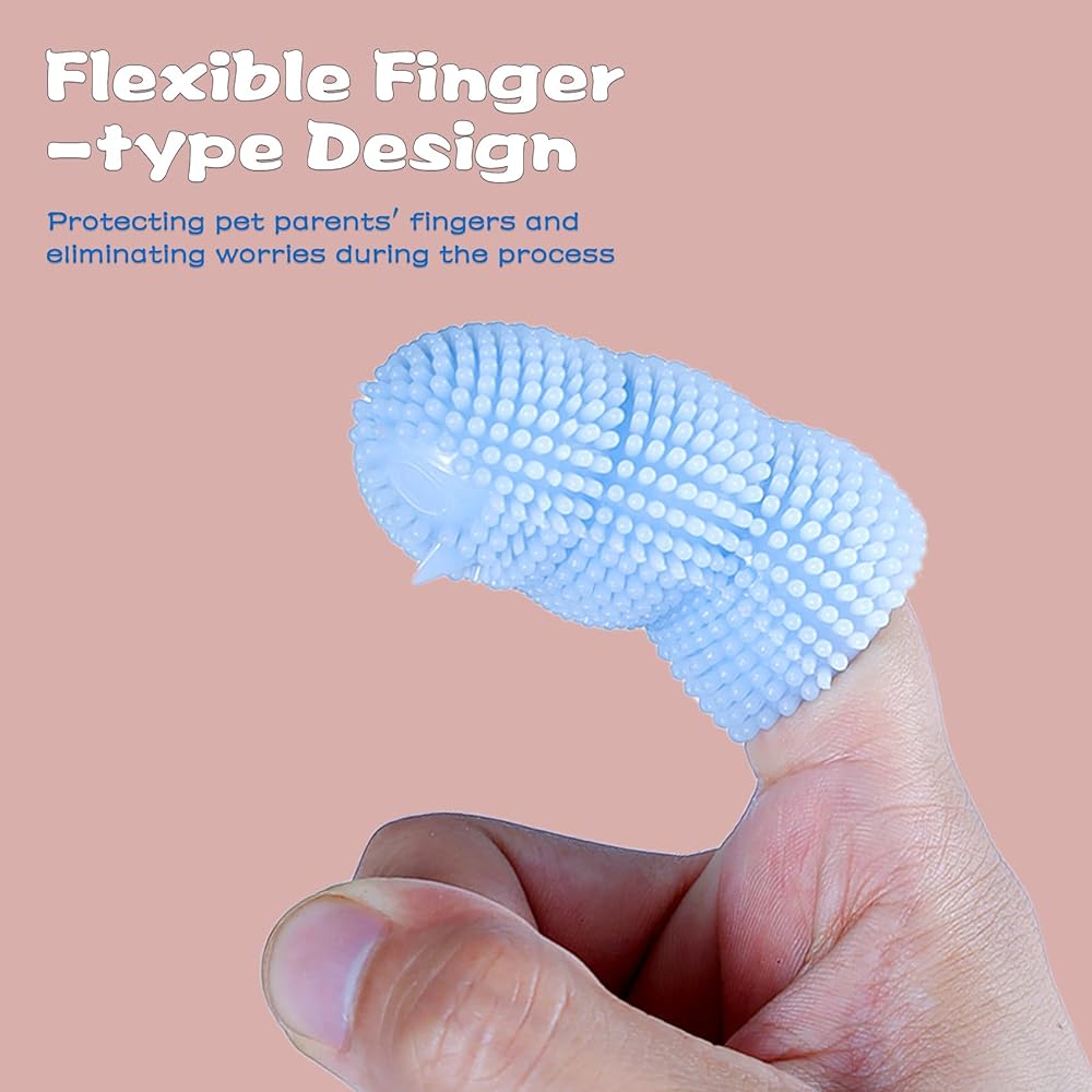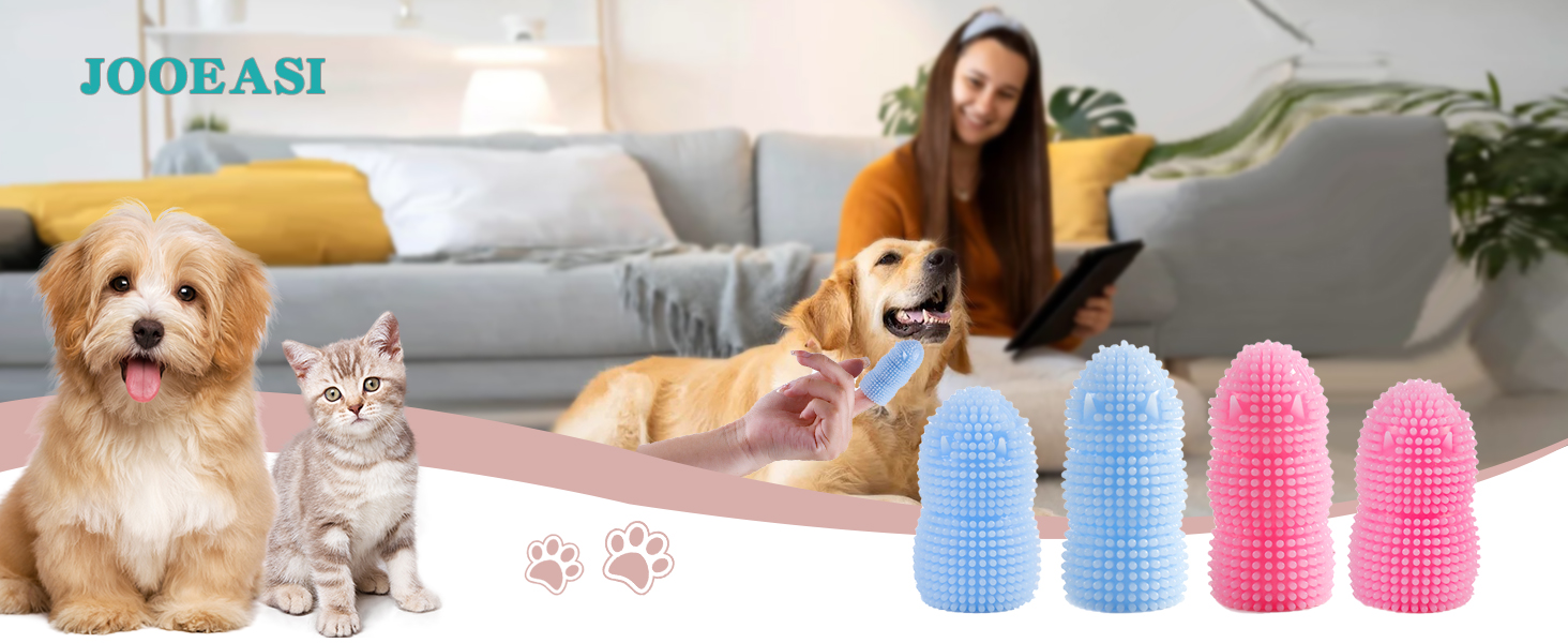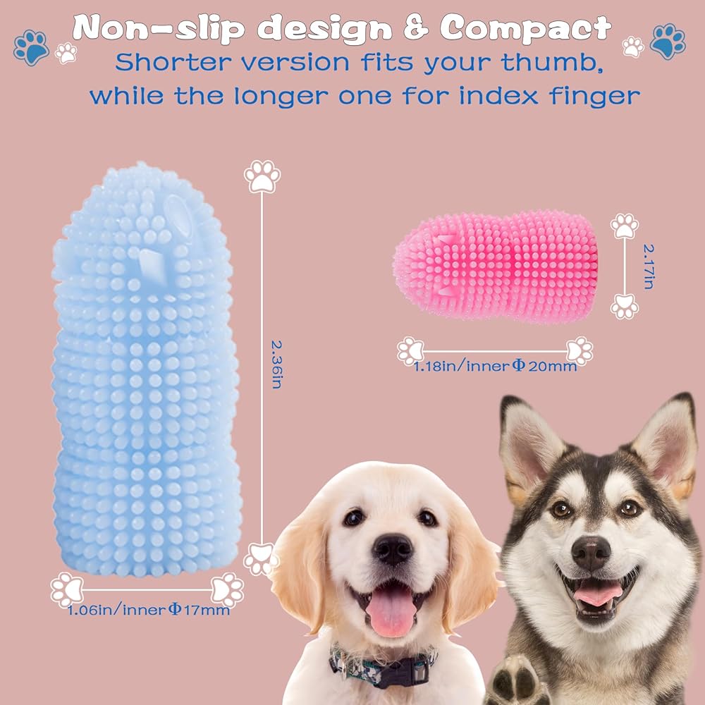 فرشاة أسنان أصابع الكلاب من جويسي، 4 قطع من فرشاة أسنان الكلاب شديدة التحمل، فرشاة أسنان ناعمة من السيليكون للكلاب والقطط (الأزرق والوردي)