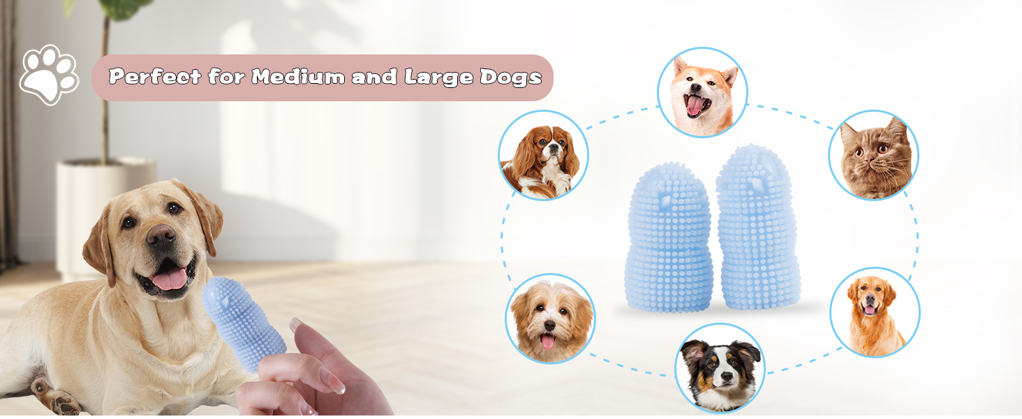 • مجموعة فرشاة أسنان للكلاب آمنة ومتعددة الاستخدامات - مصنوعة من سيليكون TPR الآمن غذائيًا، وهي آمنة للحيوانات الأليفة وخالية من مادة BPA، مما يضمن صحة فم حيوانك الأليف. فرشاة أسنان الكلاب لدينا مناسبة لجميع سلالات الكلاب، سواء كانت صغيرة أو متوسطة أو كبيرة.