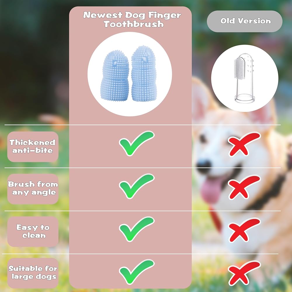 • تحويل العناية بأسنان الكلاب - تتميز فرشاة أسنان الكلاب لدينا بشعيرات ناعمة وكثيفة تجعل من السهل تنظيف تلك المناطق التي يصعب الوصول إليها. إنه لطيف بما فيه الكفاية للحيوانات الأليفة الحساسة، مما يضمن تجربة تنظيف أسنان الكلاب أكثر سلاسة وسهولة. يوفر التصميم المطور من نوع الإصبع المرونة، ويحمي أصابع الآباء الحيوانات الأليفة ويزيل المخاوف أثناء العملية.