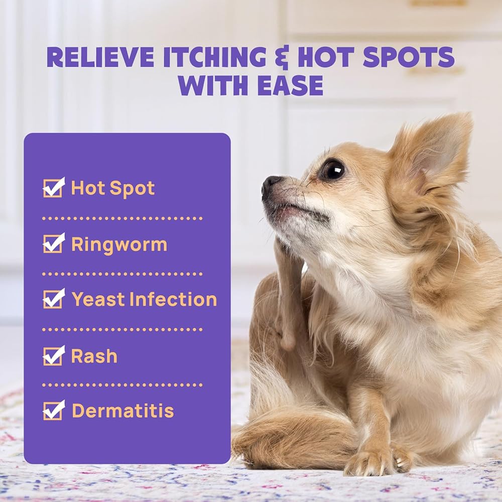 RELIEVES VARIOUS SKIN CONDITIONS: Effectively relieves hot spots, dry itchy skin, dermatitis, rashes, wounds, burns, excessive scratching, licking, or chewing in cats and dogs.