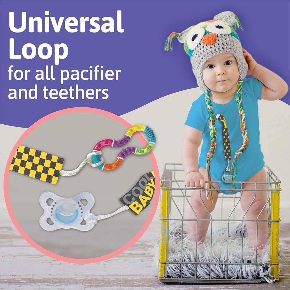 حامل لهاية أنيق للجنسين: مشبك مصاصة بوتسكا يناسب جميع أنواع المهدئات واللهايات ولهايات الأطفال. يمكن ربطها بحلقات التسنين وبطانيات الأطفال والمرايل حتى تظل مستلزمات طفلك آمنة.