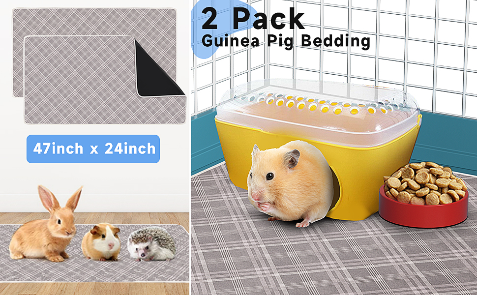 • حجم سرير خنزير غينيا: للحفاظ على نظافة منزل حيوانك الأليف في جميع الأوقات، تحتوي بطانة خنزير غينيا على قطعتين في كل عبوة، وهو أمر يسهل عليك تغييره وتنظيفه. يبلغ مقاس بطانة قفص الخنزير الغيني 46.9 × 24 بوصة (119 × 61 سم)، للتأكد من أن فراش الهامستر يناسب قفصك تمامًا، يمكنك قياس حجم قفص الخنزير الغيني الخاص بك قبل الشراء