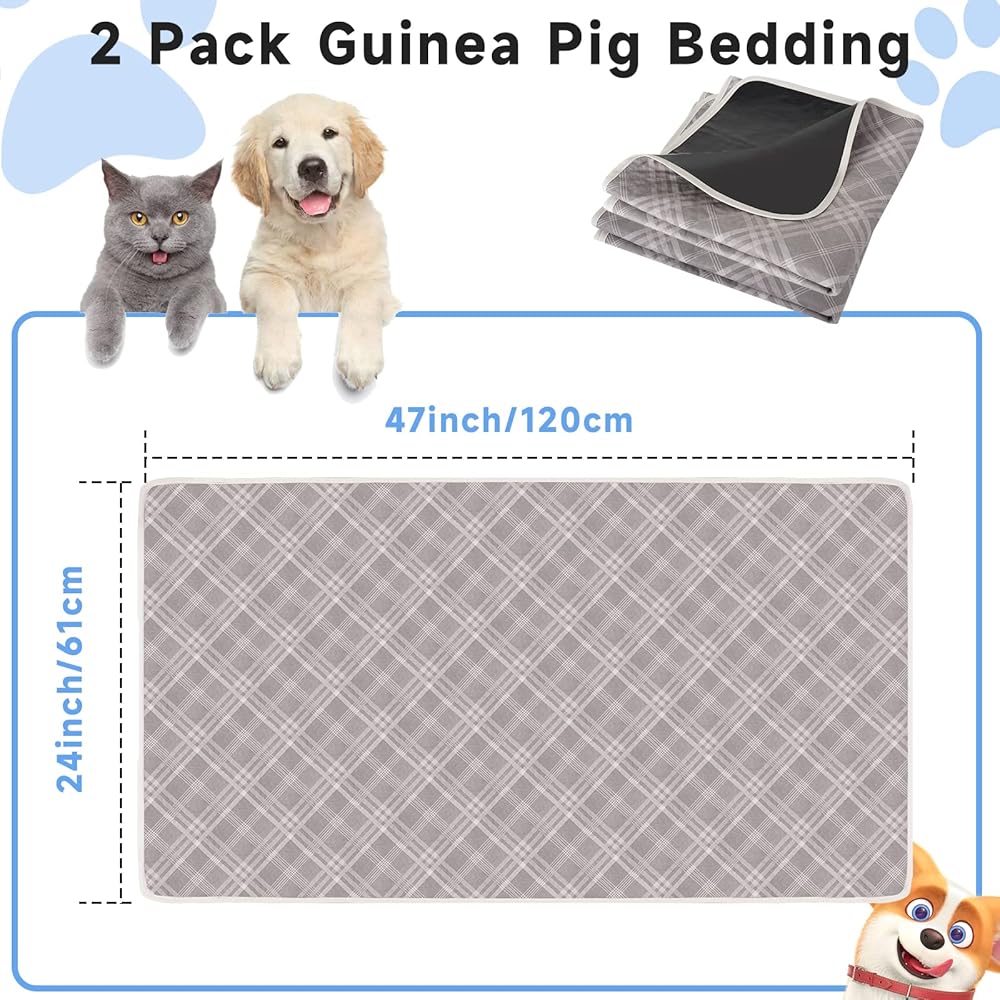 بطانات قفص الفراش خنزير غينيا - 2 حزمة 47 "× 24" قابل للغسل للماء وقابلة لإعادة الاستخدام ماصة خنزير غينيا الصوف منصات تبول الحيوانات الأليفة لأقفاص الحيوانات الصغيرة أرنب الهامستر الفئران