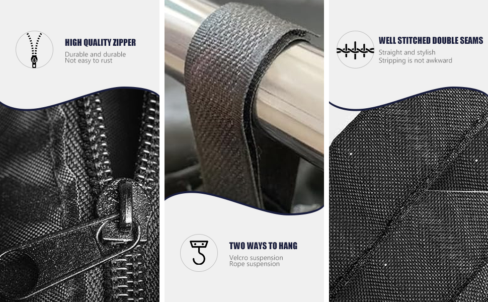 نسيج بوليستر ممتاز وأشرطة نايلون فاخرة، متينة ومقاومة للتمزق، مع طبقة داخلية من أجل خصوصية أفضل. يساعد الباب الكبير المزود بسحاب أيضًا على تدوير الهواء بالداخل، بسرعة وسهولة الوصول، ويحافظ على الحالة الرأسية للستارة بفعالية من الرياح.