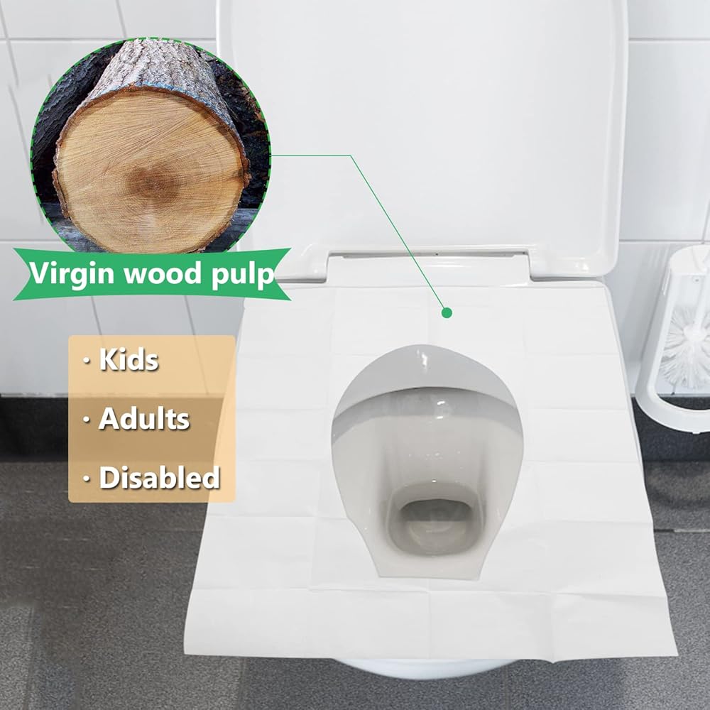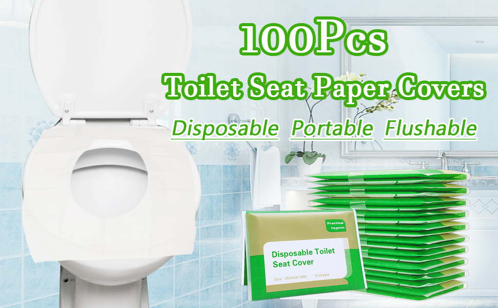 كمية كافية: 10 قطع معبأة بشكل فردي، كل عبوة تحتوي على 10 قطع من أغطية مقاعد المرحاض التي تستخدم لمرة واحدة، إجمالي 100 قطعة.