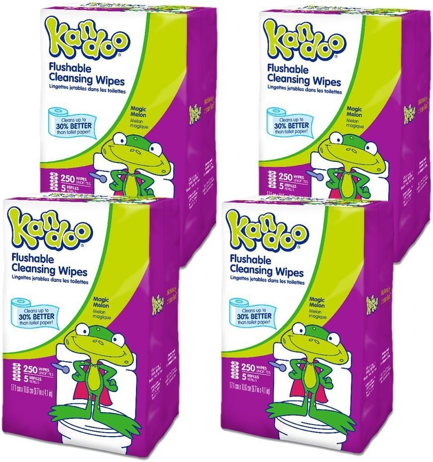 4 عبوات من مناديل كاندو ماجيك ميلون المبللة 250 قطعة قابلة لإعادة التعبئة. تتناسب هذه العبوات مع موزعات حوض الاستحمام سهلة الاستخدام (تباع بشكل منفصل)، وهي مثالية للأيدي الصغيرة للأطفال والأطفال الصغار.
