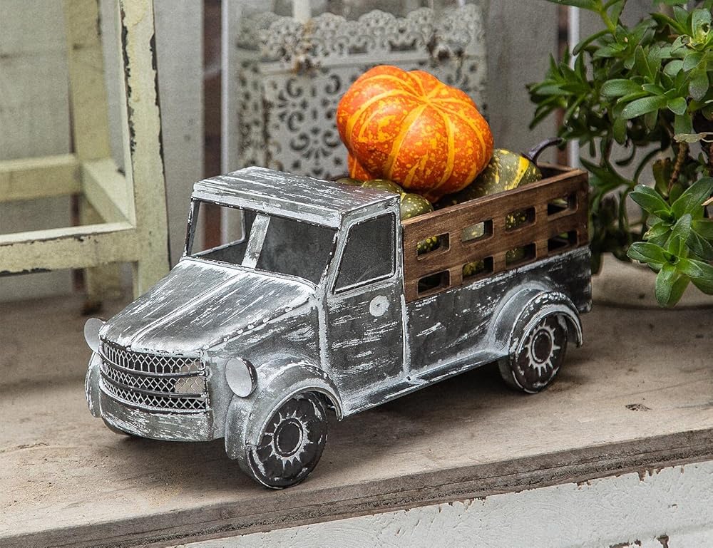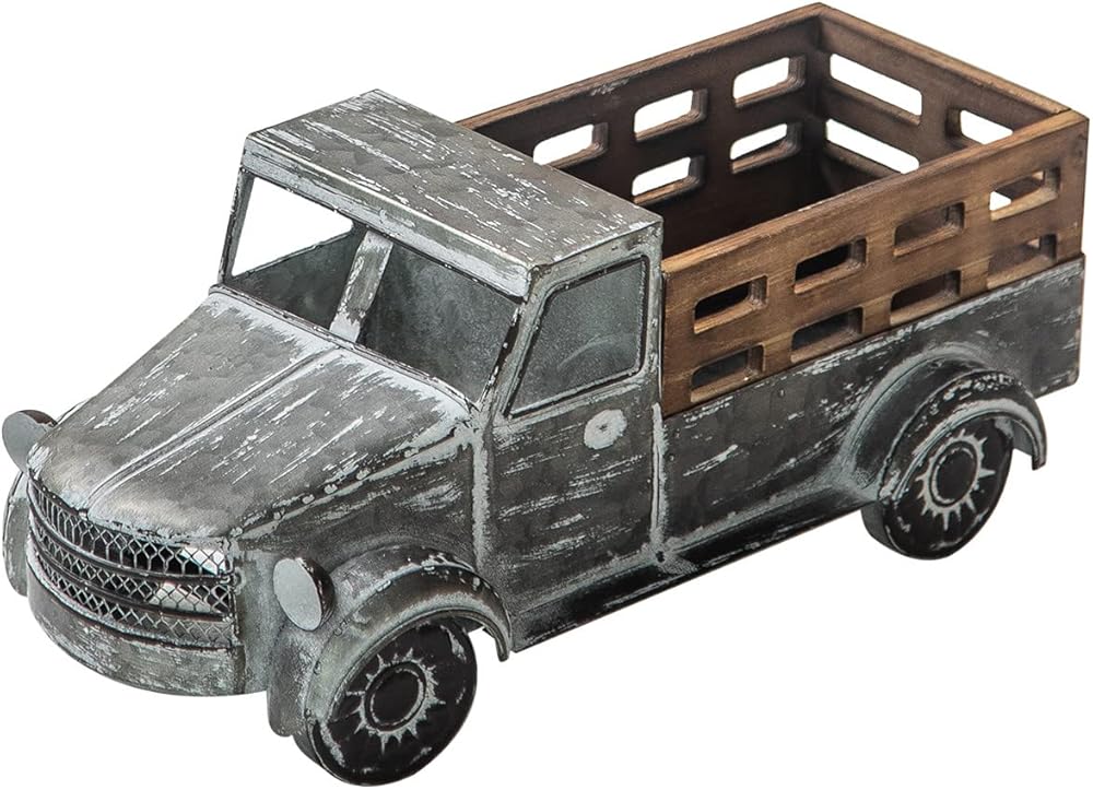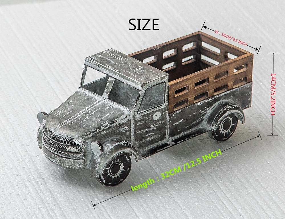 HSDDHOME Galvanized Vintage Metal Truck Décor, Farmhouse Spring autumn Decoration, Tabletop Storage Pick-up Truck Planter