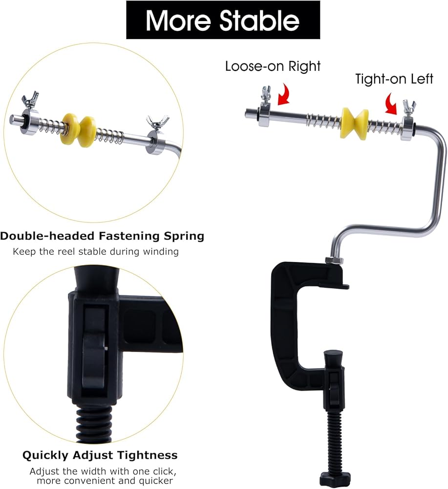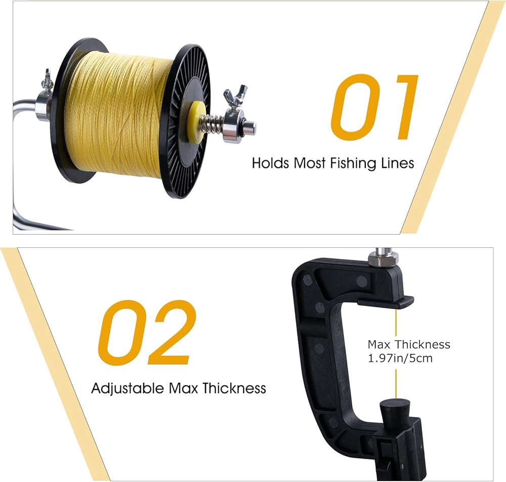 • 𝑨𝒅𝒋𝒖𝒔𝒕𝒂𝒃𝒍𝒆 𝑾𝒊𝒅𝒕𝒉 يصل الحد الأقصى لسمك لفاف خط الصيد إلى 3.15 بوصة/8 سم. يتميز المشبك بعرض قابل للتعديل وهو مناسب لمعظم بكرات خط الصيد، مما يجعله أكثر ملاءمة لتعبئة الخط وجعل الصيد أكثر راحة.