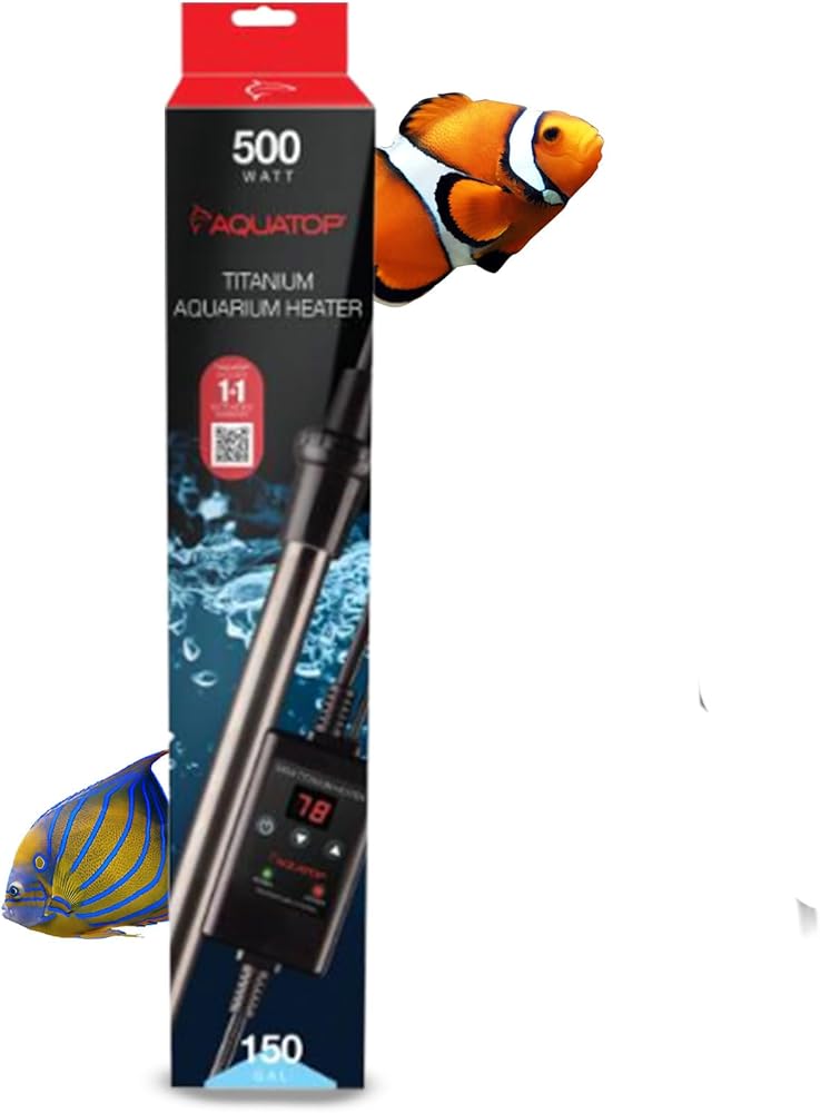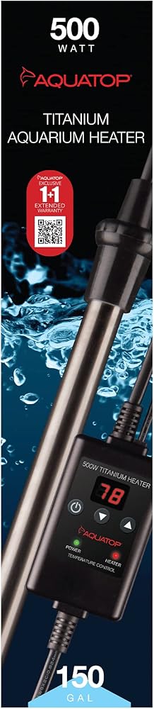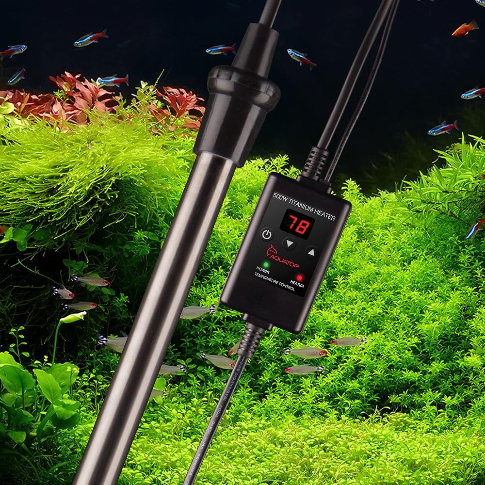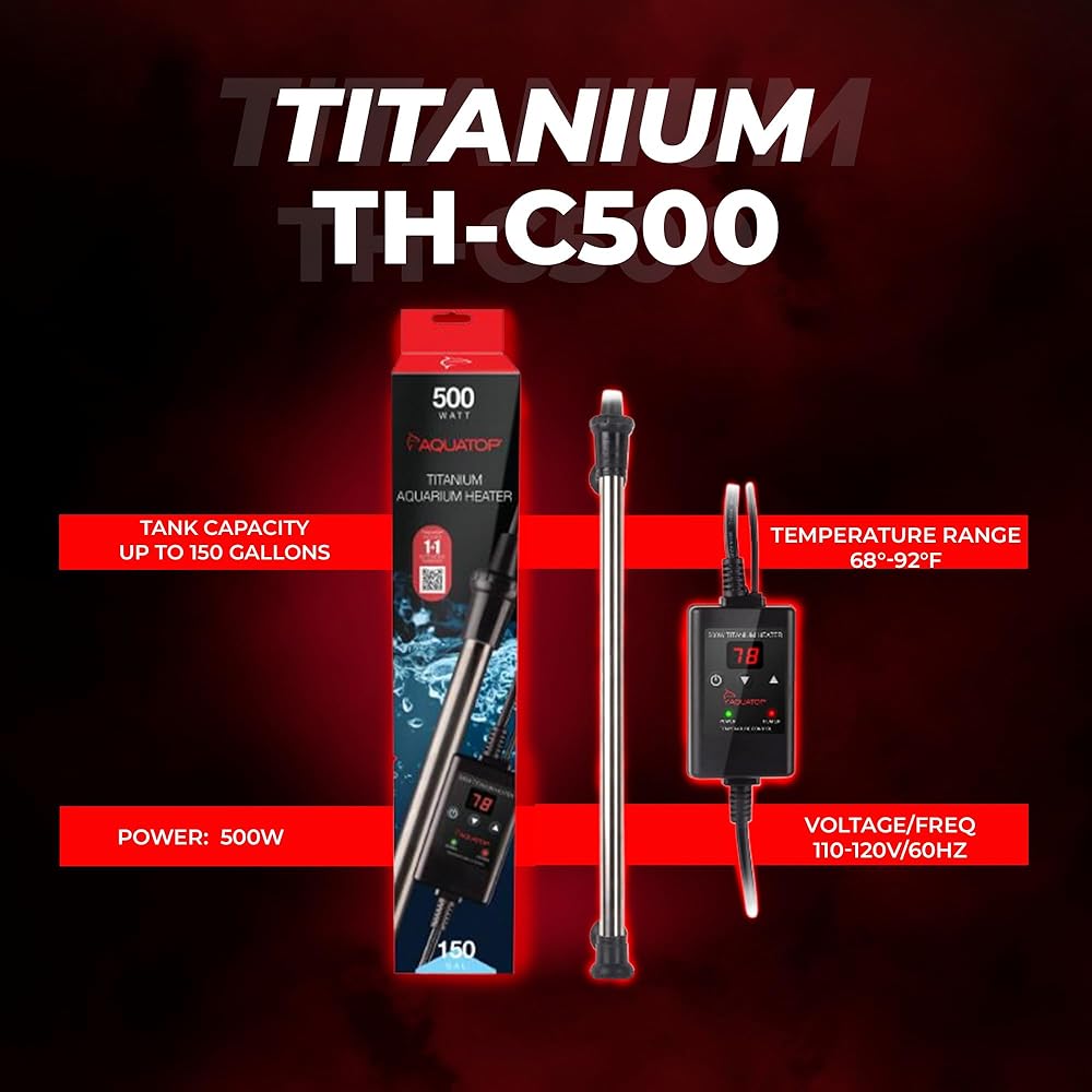 سخان تيتانيوم أكواتوب 500 وات مع وحدة تحكم - قابل للغمر بالكامل لخزانات الأسماك حتى 150 جالون، درجة حرارة قابلة للتعديل 68-92، سخان مياه متين، سخان حوض السمك للسلاحف والأسماك الكبيرة، TH-C500
