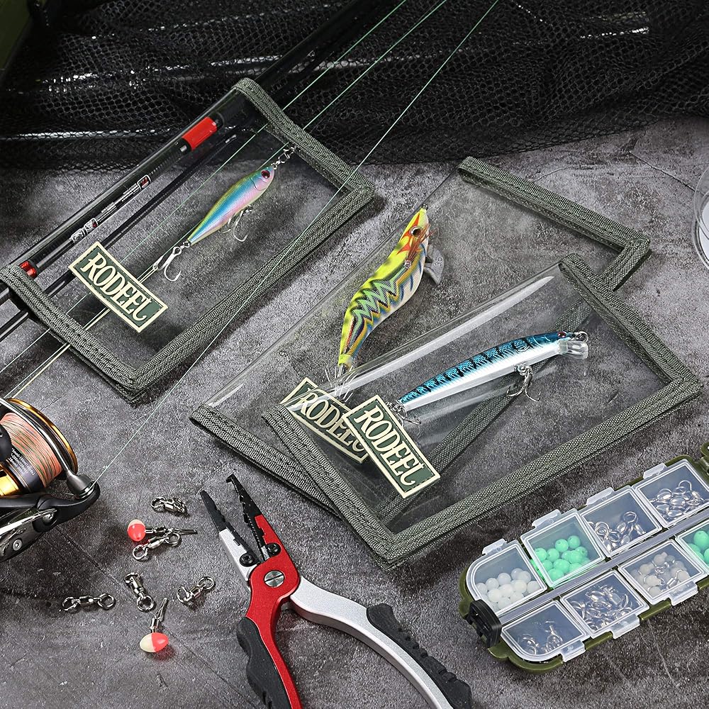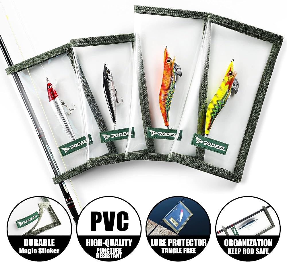 غلاف شفاف من خلال الطُعم: تسمح أغطية الطُعم ذات الرؤية الواضحة بالتعرف الفوري على الطُعم بينما تحمي قضبانك وخطك من الخطافات المكشوفة وتقلل من التشابك.