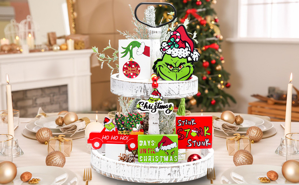 【تصميم كلاسيكي】تتميز سلسلة ديكورات الصينية ذات الطبقات هذه بنظام ألوان كلاسيكي لعيد الميلاد، وألوان زاهية ومنعشة، تدفئ المنزل بأكمله وتضفي جوًا للعطلات. يمكن ترتيب علامات عيد الميلاد اللطيفة هذه في العديد من الأنماط وفقًا لتفضيلاتك. قم بإنشاء قطعة مركزية لطاولة عيد الميلاد الخاصة بك أو ديكور صينية عيد الميلاد الأنيقة.