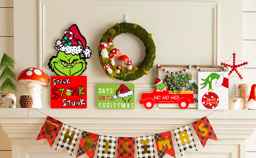 【لافتات طاولة عيد الميلاد】القطع المركزية لطاولة عيد الميلاد مثالية لديكورات عيد الميلاد في الأماكن المغلقة وديكورات حفلات العطلات. ضعها على الصينية ذات الطبقات أو طاولة غرفة الطعام أو المدفأة أو الرف أو طاولة القهوة التي يمكن أن تزين منزلك خلال تجمع سعيد لعيد الميلاد.
