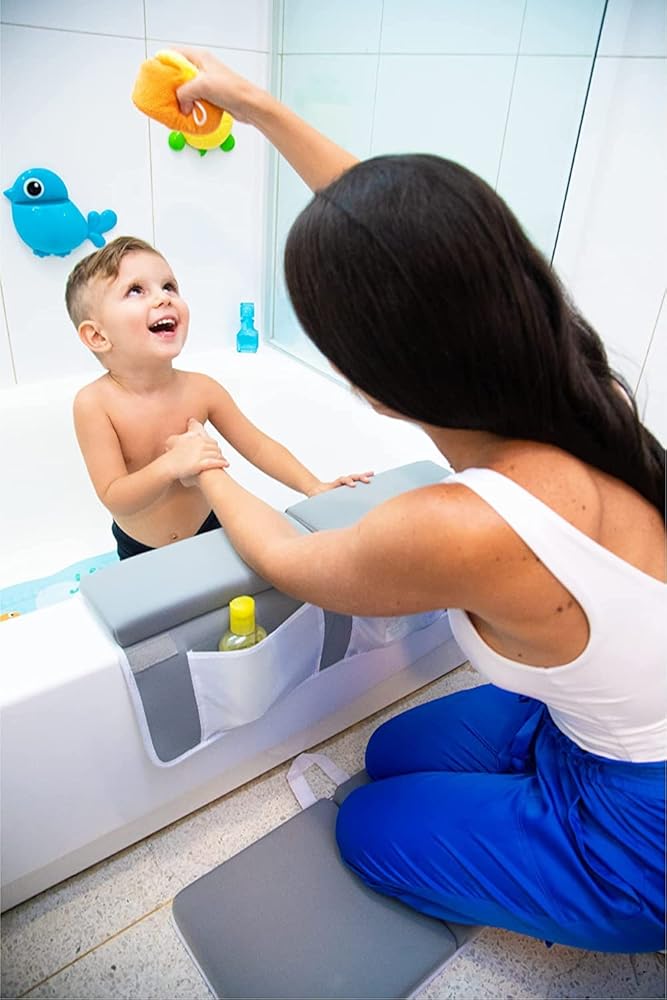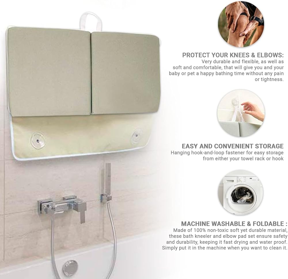 احمِ ركبتيك ومرفقيك: مجموعة حوض الاستحمام الخاصة بنا مصنوعة من النيوبرين غير السام والمتوافق مع ريتش بسمك 1.5 انش وعرض 22 انش. متينة ومرنة للغاية، بالإضافة إلى أنها ناعمة ومريحة، ستمنحك أنت وطفلك وقت استحمام سعيد دون أي ألم أو ضيق.