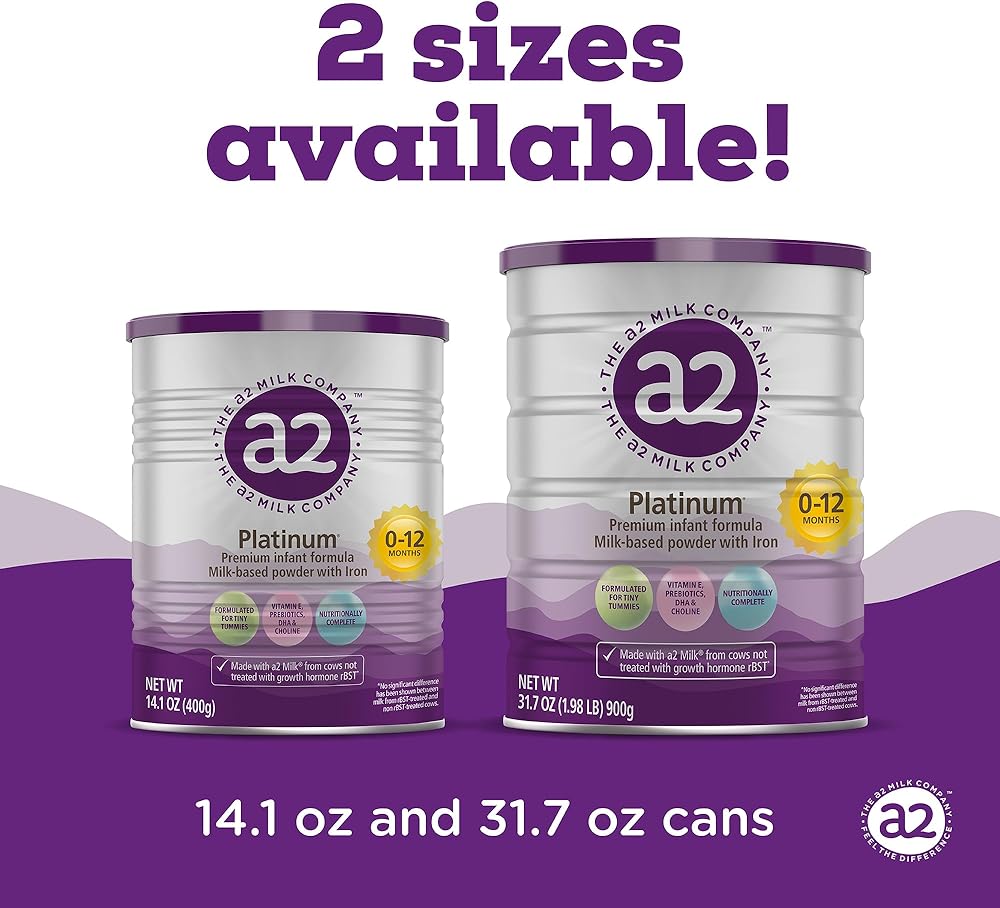 مكتمل غذائيًا: يوفر الأساس الغذائي الذي يحتاجه طفلك لتحقيق معالمه الهامة في السنة الأولى. تم تصميم a2 Platinum للبطون الصغيرة ويعتمد على مزيج فريد من بروتين مصل اللبن والكازين. يحتوي على فيتامين E والبريبايوتكس وDHA والكولين.