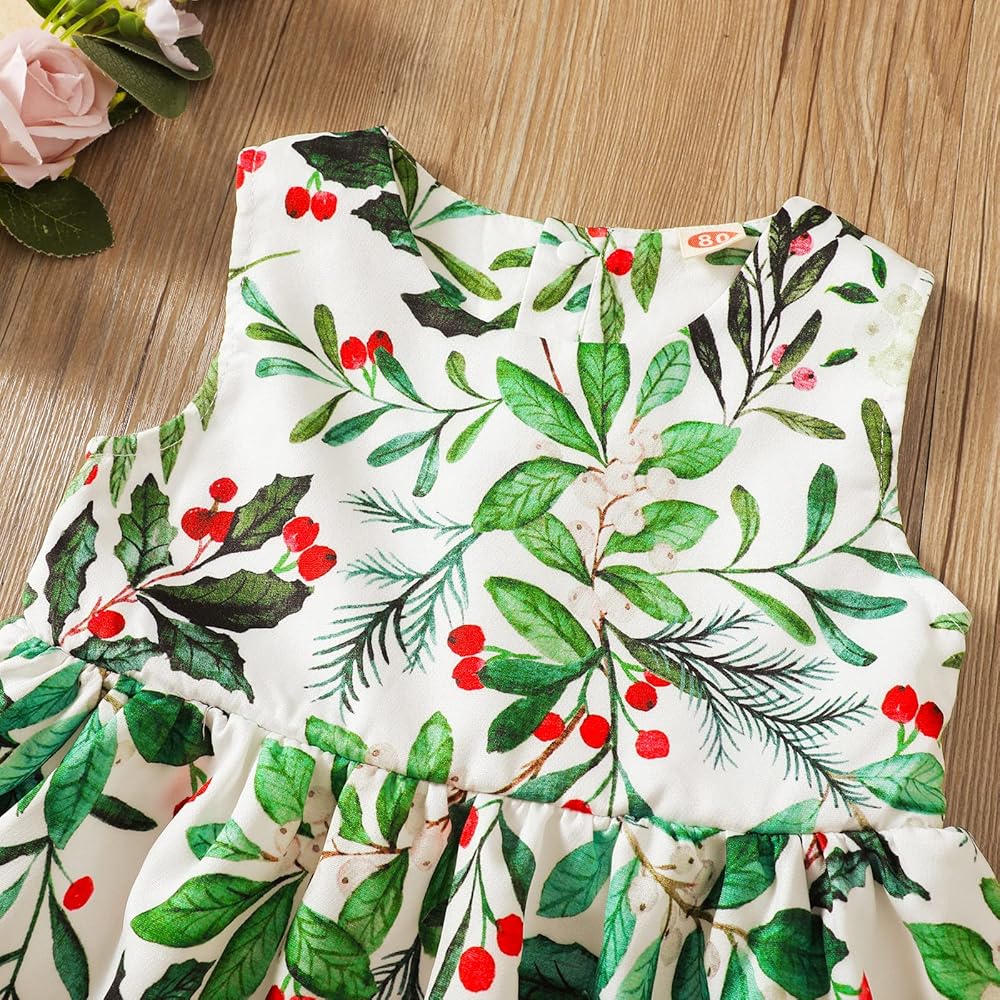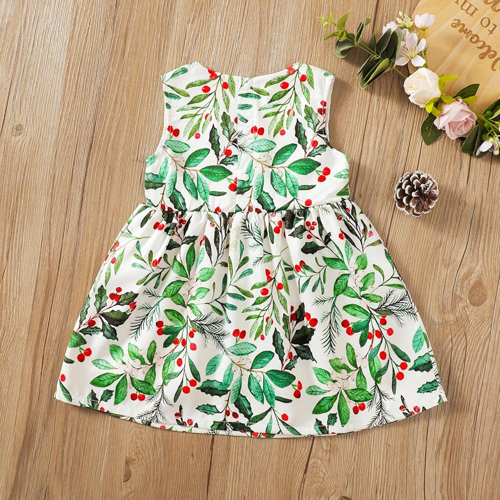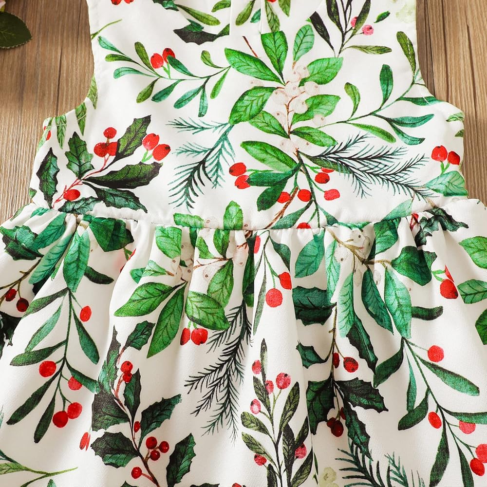 - نمط غزال وشجرة عيد الميلاد على فستان الفتيات الصغيرات، أنيق جدًا ولطيف