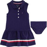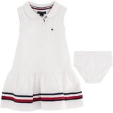 رياضي ومريح على حد سواء، فستان بولو مطبوع عليه شعار تومي هيليفيغر مصنوع من قماش بيكيه جيد التهوية بقصة فضفاضة مع حزام ذاتي للحفاظ على جماله.