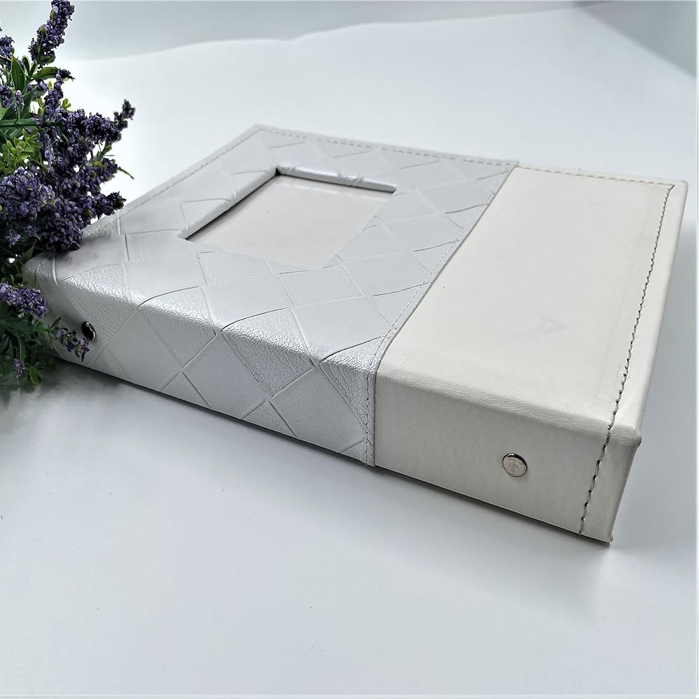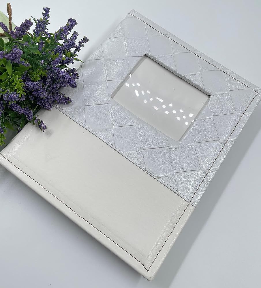 التصميم: غطاء جلدي أبيض، تصميم نافذة مفتوحة، يمكنك إدخال أي صورة تريدها في النافذة، نمط مربعات السطح، يمكن للمنطقة الفارغة السفلية كتابة علامتك أو رسالة المباركة