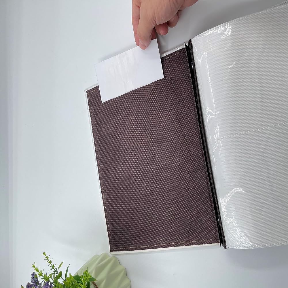 سعة كبيرة: يمكن لألبوم الزفاف الخاص بنا استيعاب 200 صورة بحجم 4 × 6، بإجمالي 50/100، كل صفحة يمكن أن تحمل 4 صور، الجزء الداخلي البني، بطانة بيضاء، مما يجعل المنتج بأكمله جوًا أكثر أناقة