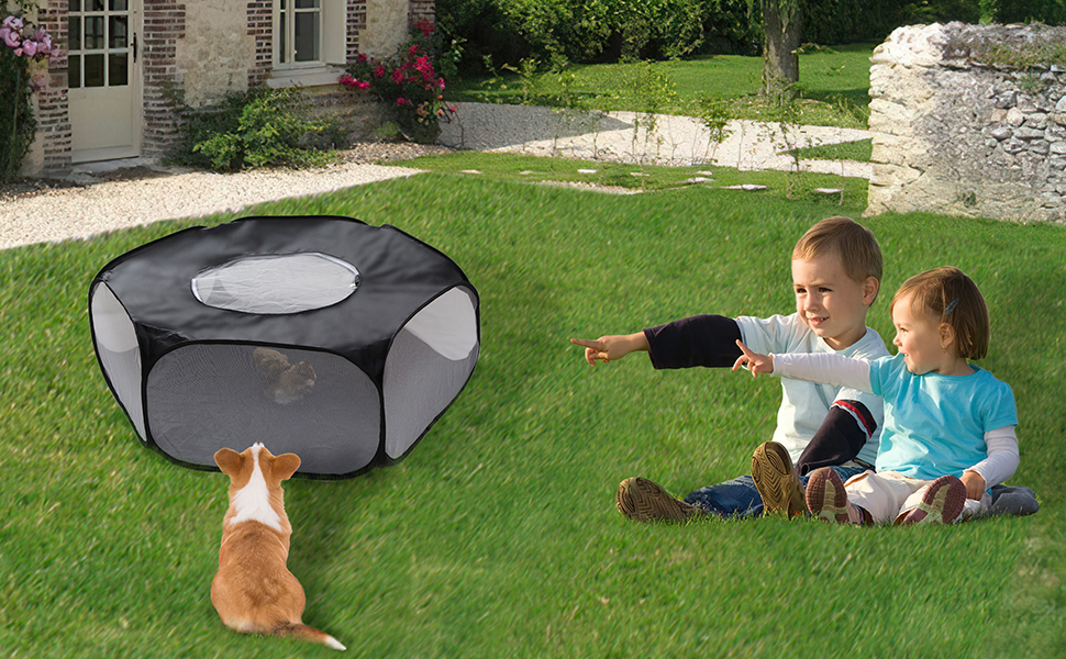 في الأماكن الخارجية أو الداخلية: سياج تدريب الحيوانات الأليفة سهل الحمل، ولا تحتاج إلى حمل قفص ضخم.
