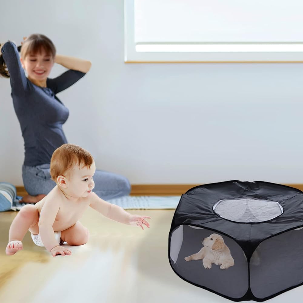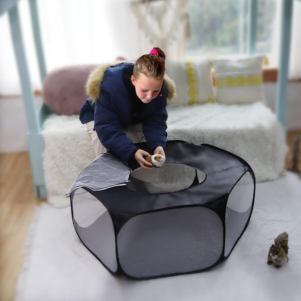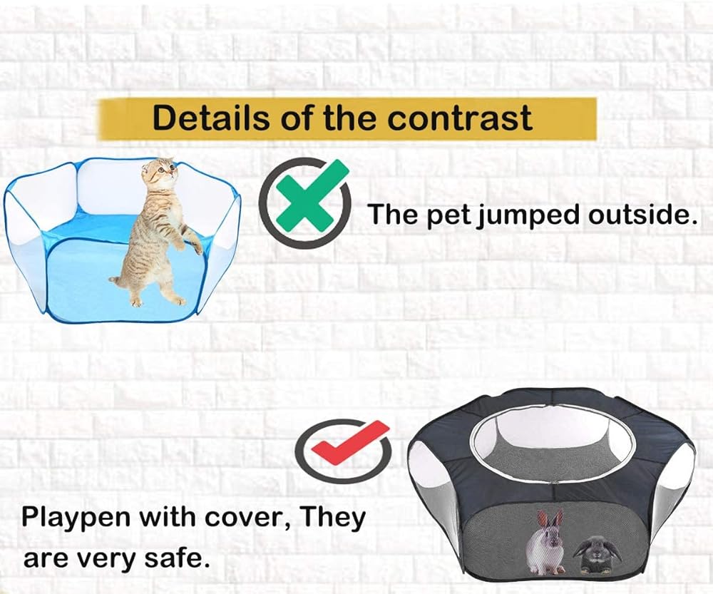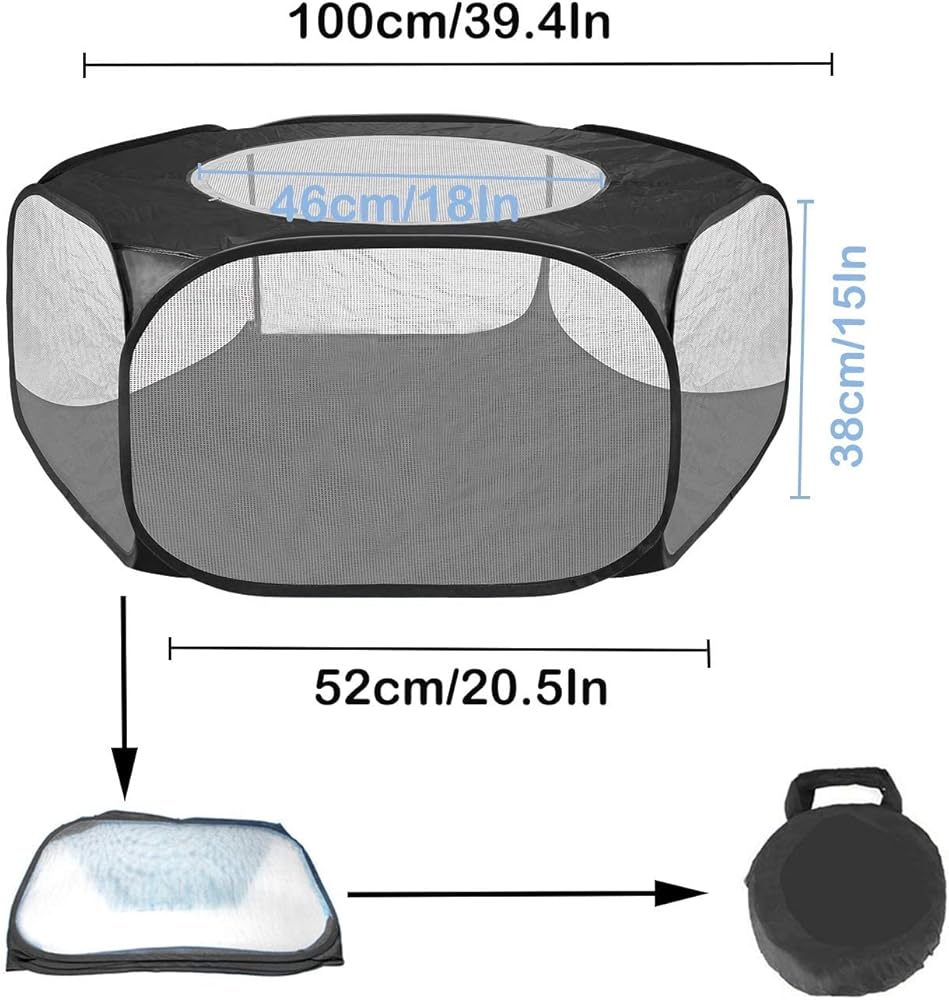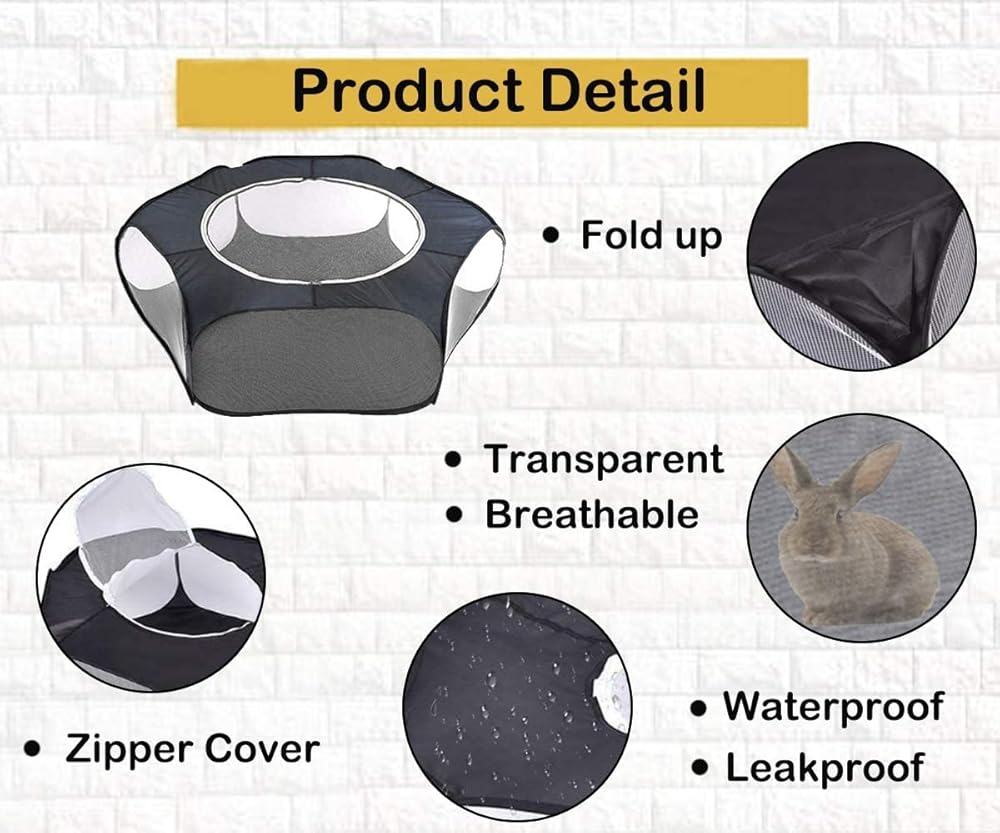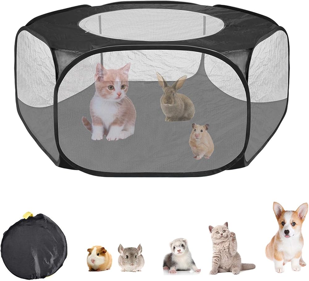 لينيفار قفص لعب للحيوانات الصغيرة، خيمة للحيوانات الاليفة سياج شفاف ومحمول مع غطاء بسحاب، سياج ساحة التمرين في الاماكن الخارجية والداخلية للجراء والقطط الصغيرة والارانب والهامستر والفئران والخنازير