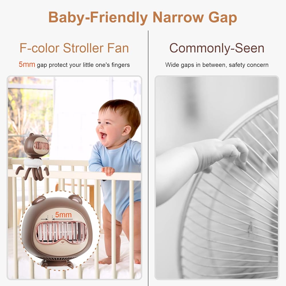 مروحة عربة الأطفال المحمولة F-color - مشبك على المروحة 120 درجة مروحة متأرجحة مع 4 سرعات قابلة لإعادة الشحن مروحة صغيرة خالية من الشفرة مع مشبك ثلاثي القوائم مرن لسرير الطفل ومقعد السيارة والمشي في الهواء الطلق