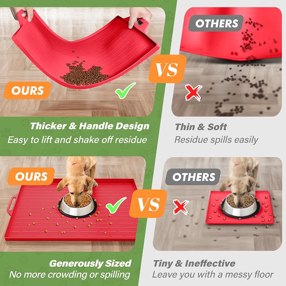 Provides a better-looking feeding station in your home. The raised lip can stop food and water spills, catching messes before they make it to your hardwood floors, carpet, or rugs.