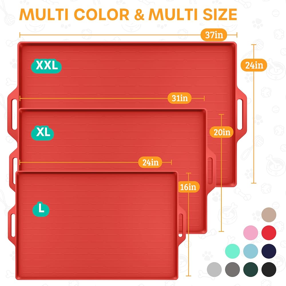 Our silicone trays fit up to several Pet Junkie elevated bowl stands - large or small - or a comparable dish set. They're good for big dogs, small dogs, cats, and kittens. These placemats will work with polyresin, ceramic, plastic, stainless steel feeders, or a pet fountain.