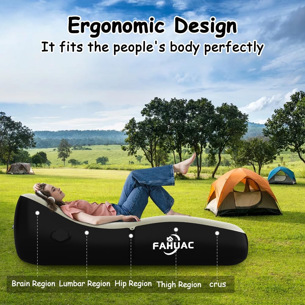 • *تصميم متعدد الاستخدامات: يمكن استخدامه كرسي استلقاء أو أريكة أو مرتبة هوائية أو حتى سرير محمول. إنه مثالي للتخييم أو الذهاب إلى المهرجانات أو مجرد التسكع في الفناء الخلفي الخاص بك. إنه ليس مجرد أريكة، بل يمكن أيضًا استخدام سرير الأريكة ذو المرتبة الهوائية كسرير للتخييم أو للضيوف طوال الليل. يتميز التصميم الفريد بمسند رأس مرتفع يمكن استخدامه كوسادة، مما يسمح لك بالاسترخاء في أي مكان تذهب إليه.