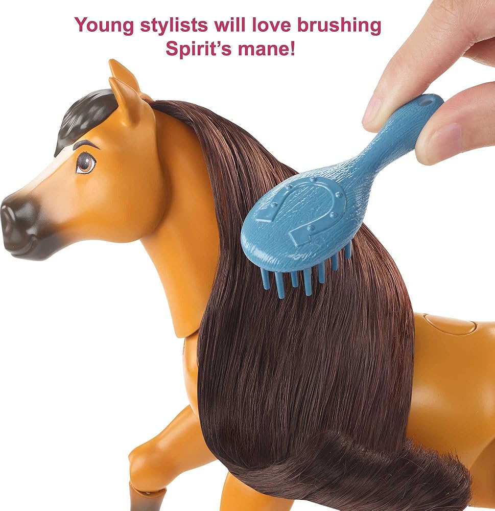 من أجل متعة اللعب بالشعر، قومي بتمشيط شعر وذيل سبيريت الجميل الطويل بالفرشاة واستمتع بلحظات التغذية مع التفاح لتناول الوجبات الخفيفة