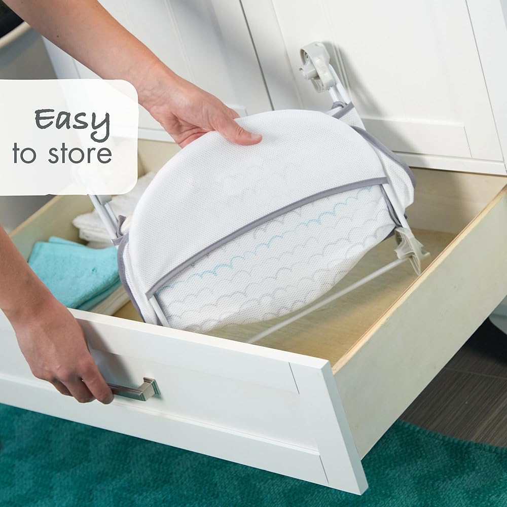Secure Bath Seat: The non-slip foam of this baby tub provides full coverage and helps keep baby comfy and steady during bath time and also dries quickly to help keep it free from buildup
