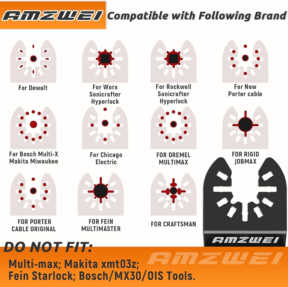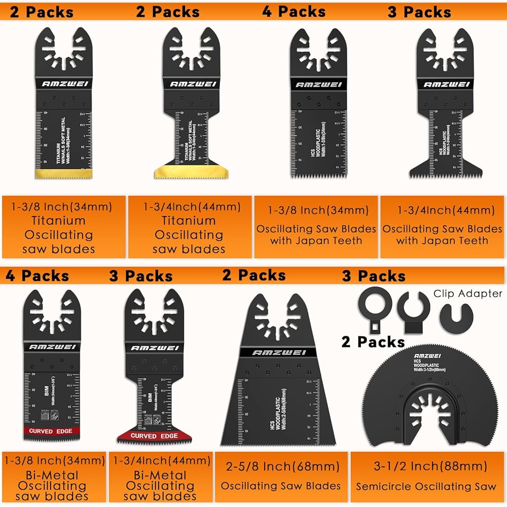 شفرة ادوات متذبذبة من التيتانيوم من امزوي، مجموعة شفرات احترافية ثنائية المعدن متعددة الادوات للاظافر الخشبية والمعدن والبلاستيك باسنان يابانية تناسب ديوالت وميلووكي وبوش ووركس وريوبي