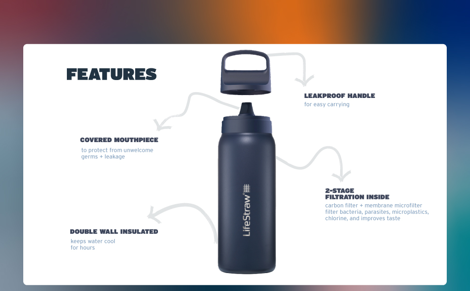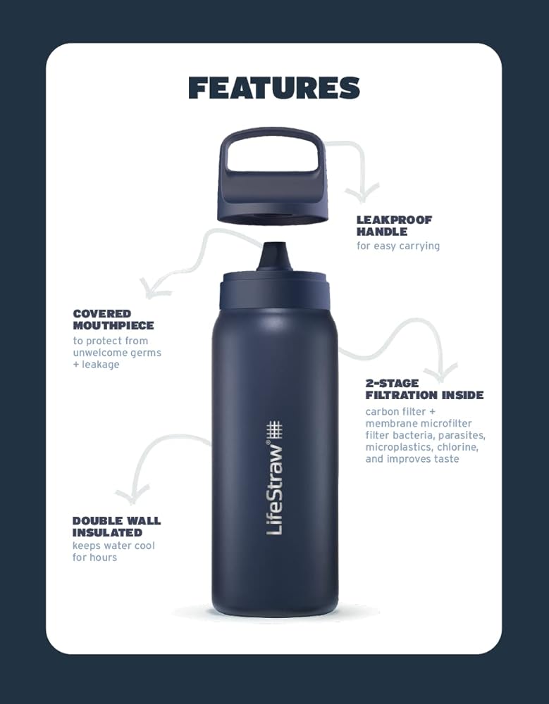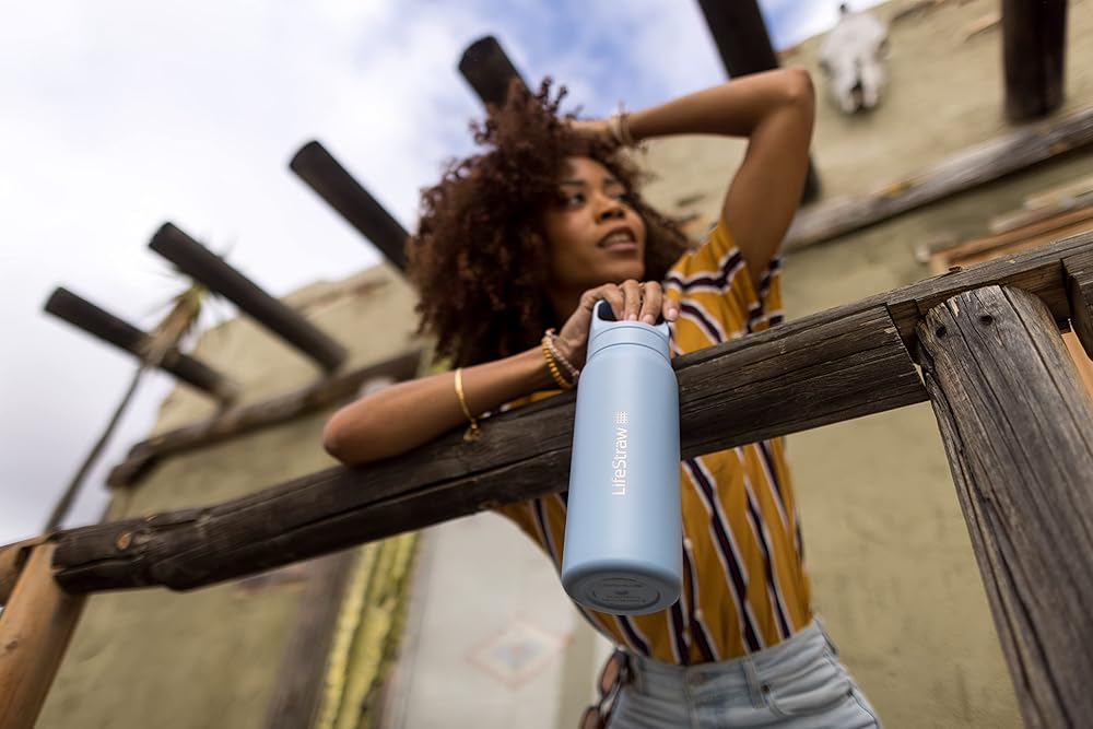 LifeStraw Go Series is the ULTIMATE SIDEKICK. The stainless steel BPA-Free bottle filters out nasties so you can fill up from airport bathrooms, a tap in Mexico, or a gas station while road-tripping.