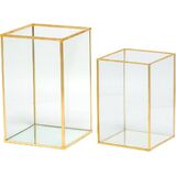 • 【مجموعتان من قطعتين، 1 كبيرة + 1 متوسطة】- تتضمن مجموعتين من حامل الشموع الزجاجية، مقاس كبير: 5.5 × 5.5 × 9 بوصات، الحجم المتوسط: 4.7 × 4.7 × 7 بوصات. مزيج من مقاسين، تطابق مثالي، مناسب للشموع ذات الأحجام المختلفة.