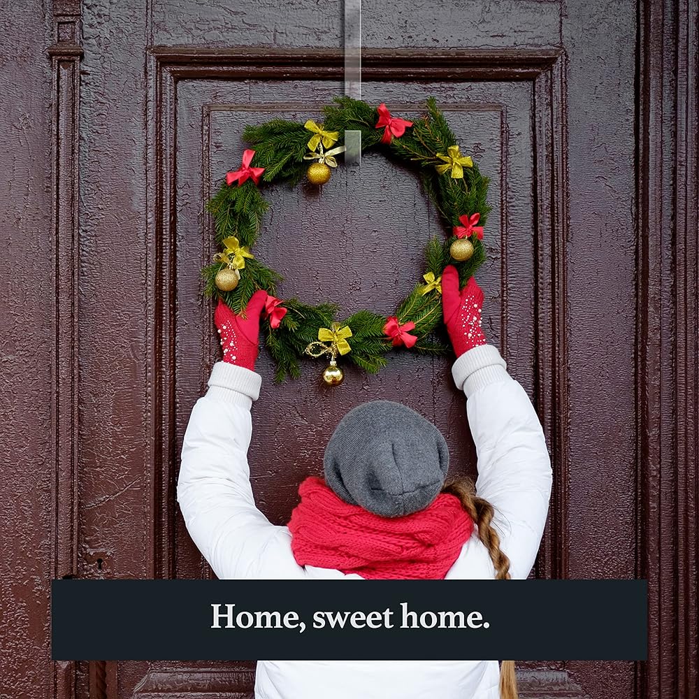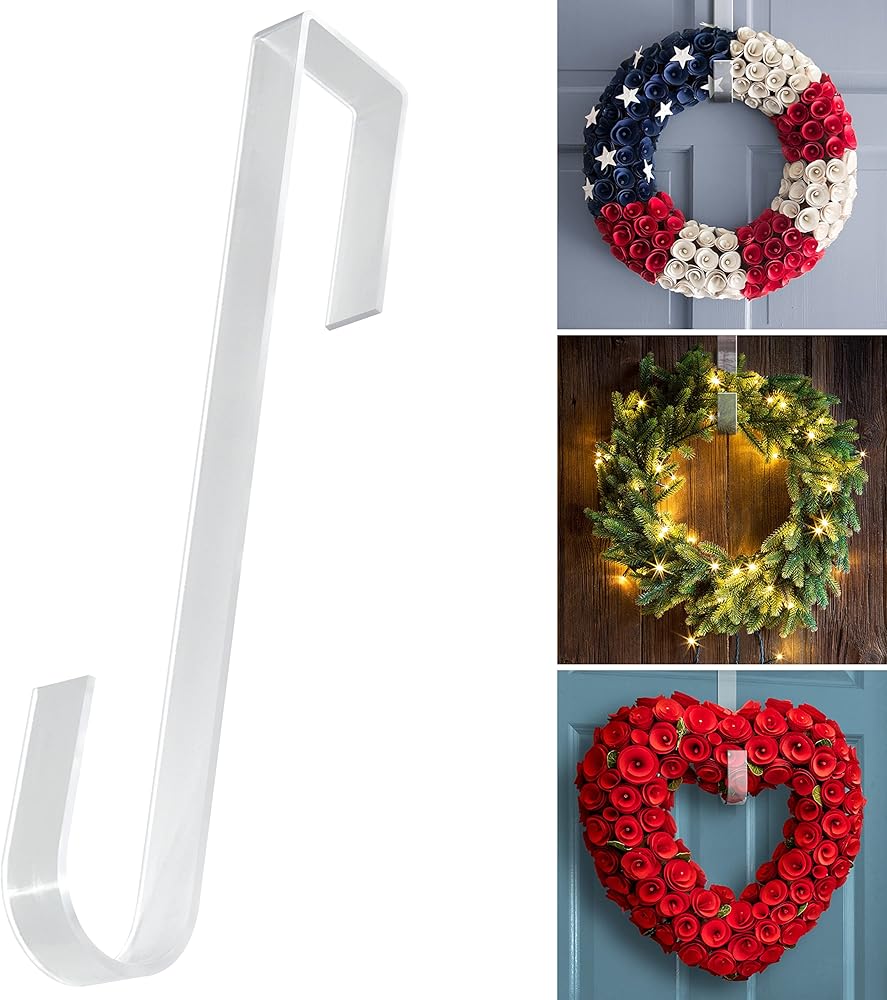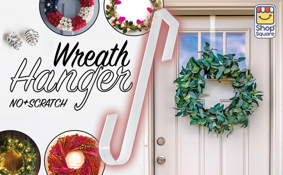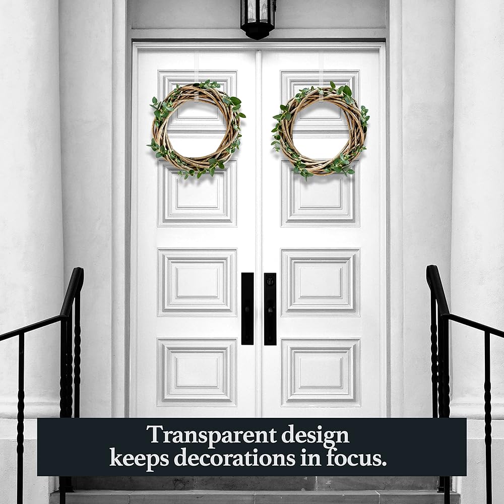 تسوق شماعات إكليل مربعة شفافة للباب الأمامي - شماعة إكليل باب مقاس 12 بوصة للباب الأمامي بالخارج - خالية من الخدوش، وخالية من المواد اللاصقة فوق خطاف شماعات الباب للباب الأمامي في الداخل أو الخارج