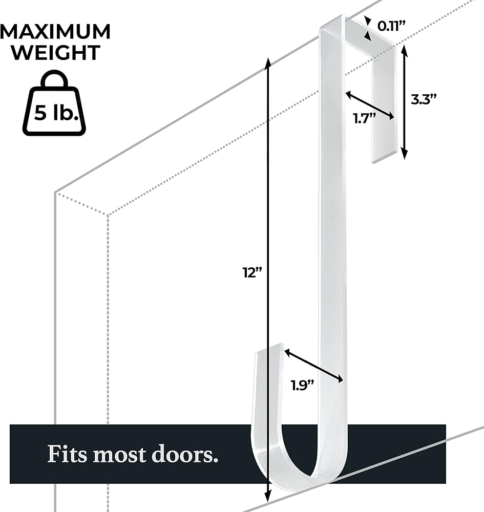 تركيب بدون متاعب: استمتع براحة التركيب السهل مع خطافات إكليل الزهور الخالية من المواد اللاصقة مقاس 12 بوصة. لا حاجة لأي أدوات ضارة أو تعليمات معقدة، ببساطة قم بتعليق حاملات الإكليل الخاصة بنا على الباب أو أي سطح وقم بتزيين منزلك في ثوانٍ! يمكن لشماعات إكليل الباب الخاصة بنا أن تحمل ما يصل إلى 5 أرطال.