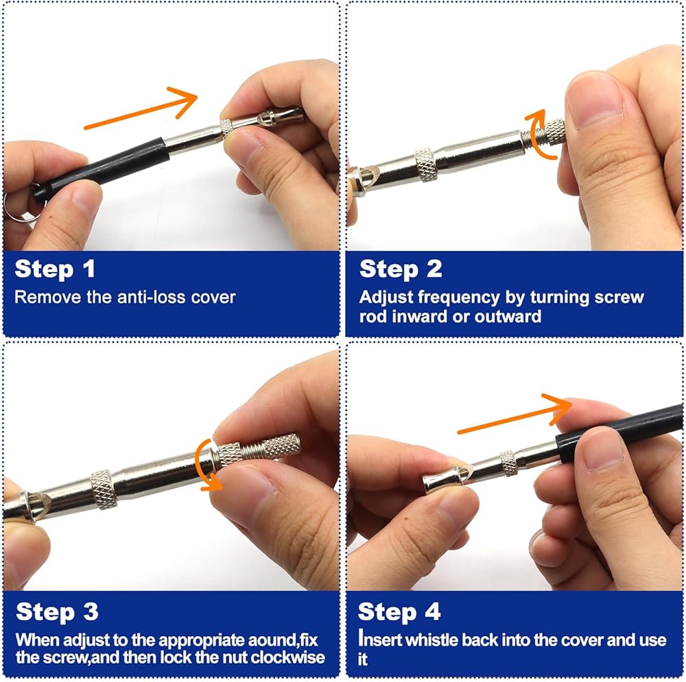 1. ترددات قابلة للتعديل: تستجيب سلالات الكلاب المختلفة بشكل مختلف للترددات المختلفة. صفارة الكلاب بالموجات فوق الصوتية الخاصة بنا مجهزة بصامولة ومسمار، يمكنك ضبط التردد بحرية عن طريق تدوير قضيب المسمار إلى الداخل أو الخارج. راقب استجابة كلبك لكل تردد حتى تجد الاستجابة الأقوى