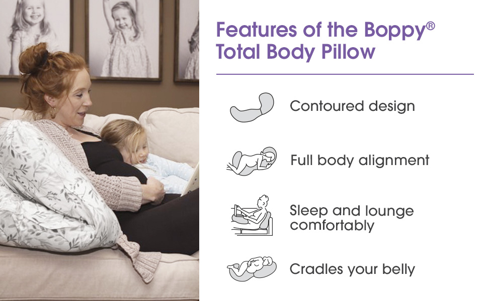 FULL BODY COMFORT AND SUPPORT: The Boppy Total Body Pillow is a one-piece maternity pillow that provides full body support and alignment for your head, neck, back, hips, and baby bump