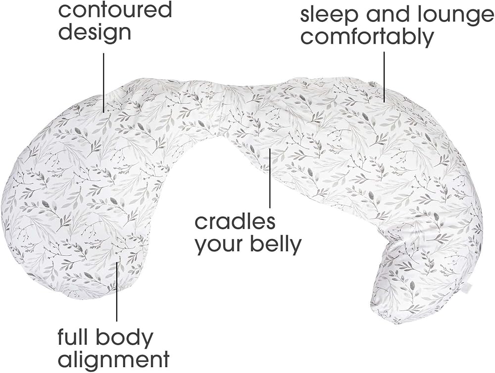 This Boppy body pillow is for mamas looking for all the plush comfort they can get. The Total Body Pillow gives prenatal and postpartum support everywhere you need it. The full body design provides maternity support for your bump, hips, lower back, and shoulders in one. Its contoured design supports you exactly where you need it. Angled to support your head and neck to relieve shoulder pressure. Curved to match your natural leg line when side sleeping, the Total Body Pillow pads your knees and aligns your hips to help alleviate hip and lower back discomfort. The pillow's center is designed to cradle your bump as you and baby grow. Great for sleeping and for getting comfy while lounging at home. The easy-flex design adds back and knee support while lounging on the sofa or sitting up in your bed to read or create your online baby registry! The soft pillow cover provides cooling comfort. The body pillow and the pillow cover are both machine washable, so it is easy to clean. The pillow is large enough to support your whole body while still able to fit in most washing machines. The Boppy Total Body Pillow is part of a full line of Boppy maternity pillows designed to support the varying needs and stages of pregnancy. Our prenatal pillows support you pre- and post-birth and help you get comfortable while sitting or sleeping. Eboni S. Hollier, MD, FAAP (Mommy MD) says, “Because of its length and contour, it efficiently supports many physical issues commonly experienced during pregnancy including back pain and increased pelvic pressure.”