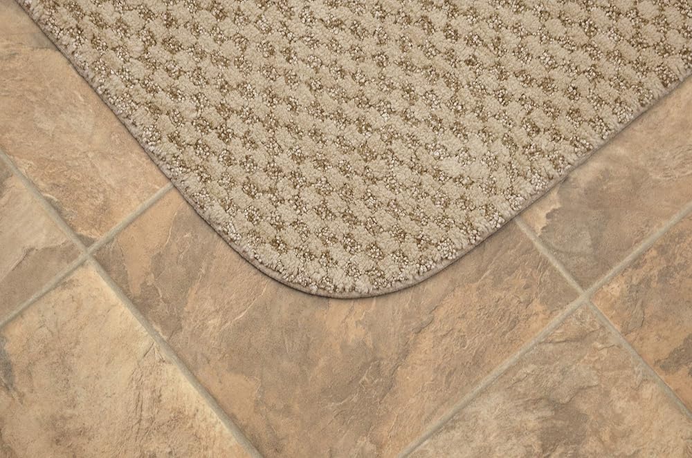 Cabernet bath rugs by Garland Rug are soft and stylish. The pin-dot design lends a classic understated touch to your bath coordinates collection. This 3-piece rug set comes with a 21 inch x 34 inch bath mat, 21 inch x 24 inch toilet contour and a 17 inch x 14 inch universal toilet lid cover designed to fit most toilet lids. The soft pile of this rug is made of 100% Nylon and features a washable skid resistant latex backing. Like all products made by Garland Rug these Cabernet rugs are proudly made in the USA. Please Note that size and color representation are subject to manufacturing variance and may not be exact. Also note that monitor settings may vary from computer to computer and may distort actual colors. Photos are as accurate as possible; however, colors may vary slightly in person due to flash photography and differences in monitor settings. Each rug/carpet is manufactured with the same colors as pictured; however they can be manufactured from slightly different "dye lots". Meaning when the yarn is dyed it can vary in shade ever so slightly.