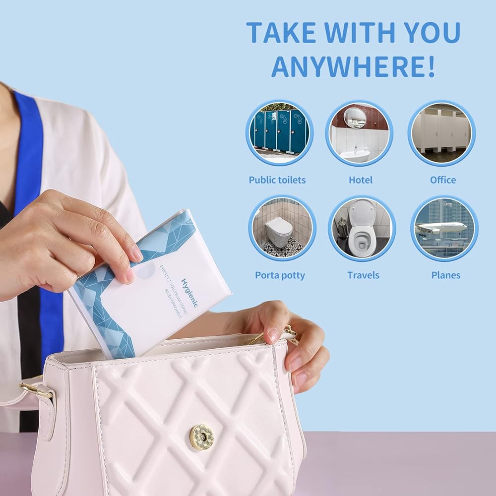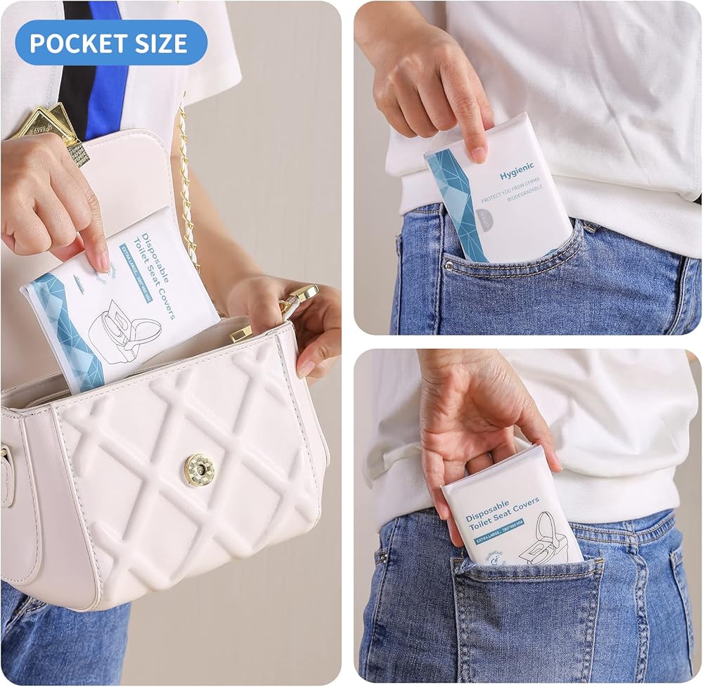 【Portable Size】 The disposable seat covers for toilets comes in a resealable packaging with 10 sheets per pack. Very light and travel friendly. Can be easily packed in your purse or pocket.