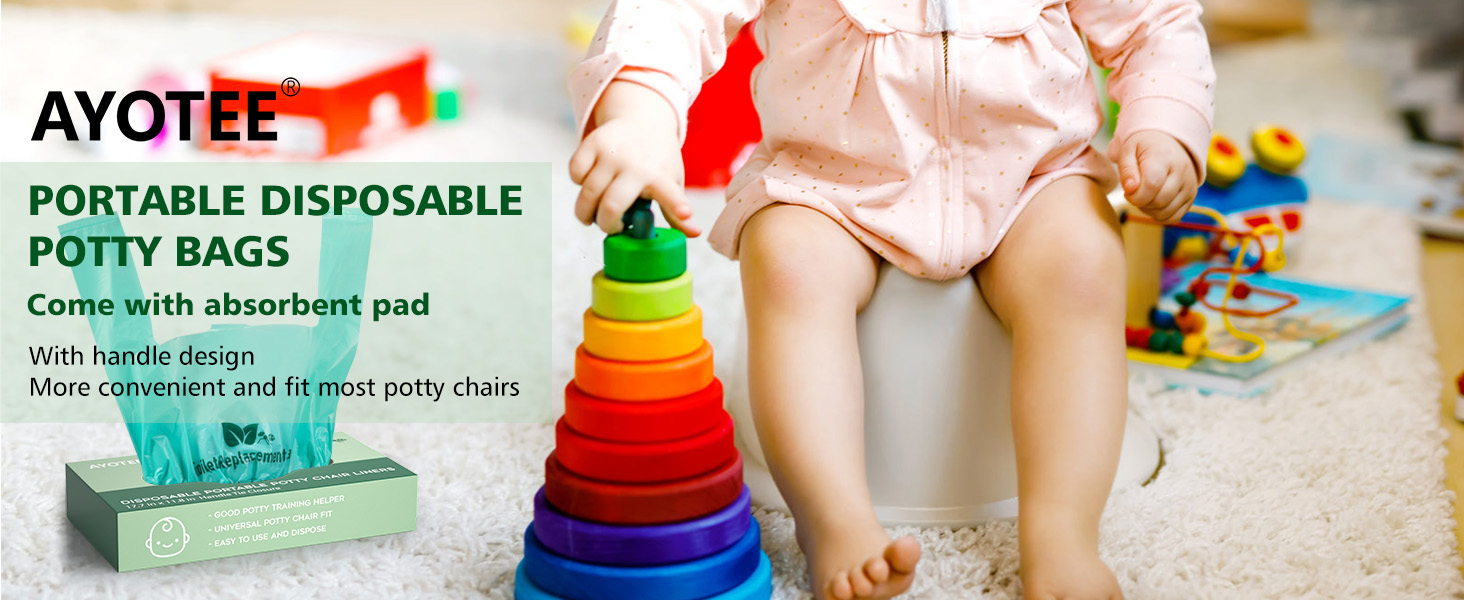 Travel Potty Bags for Portable Toilet Kids,AYOTEE Disposable Potty Liners for Toddlers,50 Packs Potty Chair Liners with Absorbent Pads, Kids Portable Potty Bags Disposable