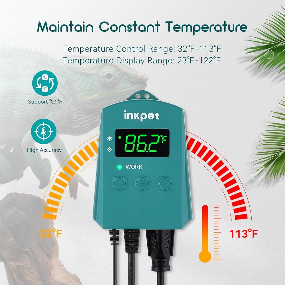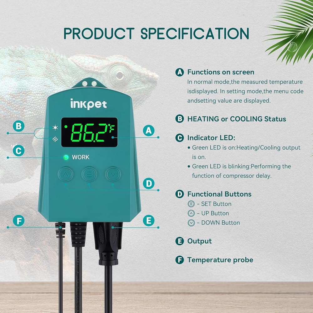 الإعداد السهل: ما عليك سوى إعداد مسبار درجة الحرارة، وتوصيل وحدة التحكم، واختيار إعداد درجة الحرارة المرغوب فيه عبر واجهة ذات 3 أزرار. شاشة ديجيتال تدعم وحدات فهرنهايت ودرجة مئوية.