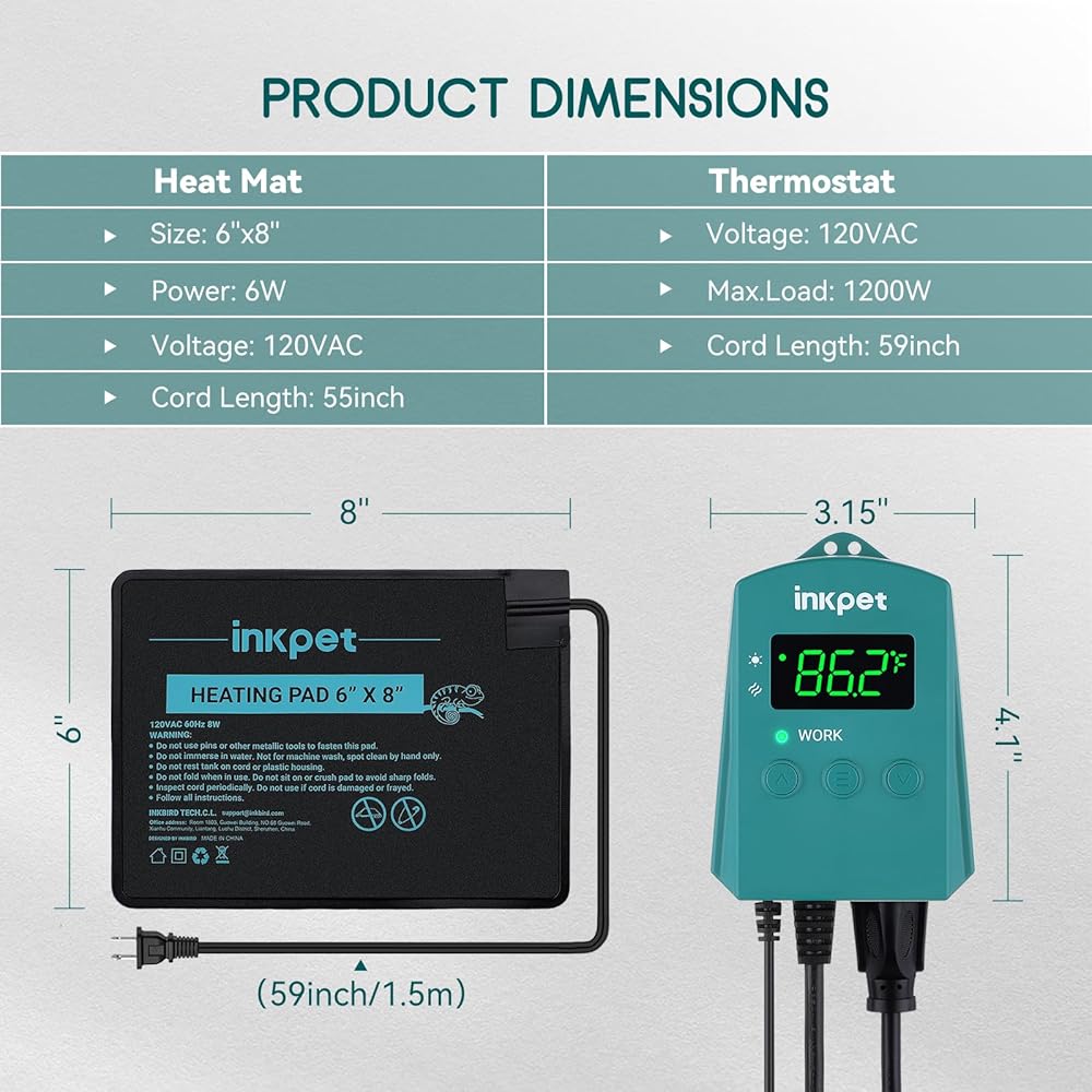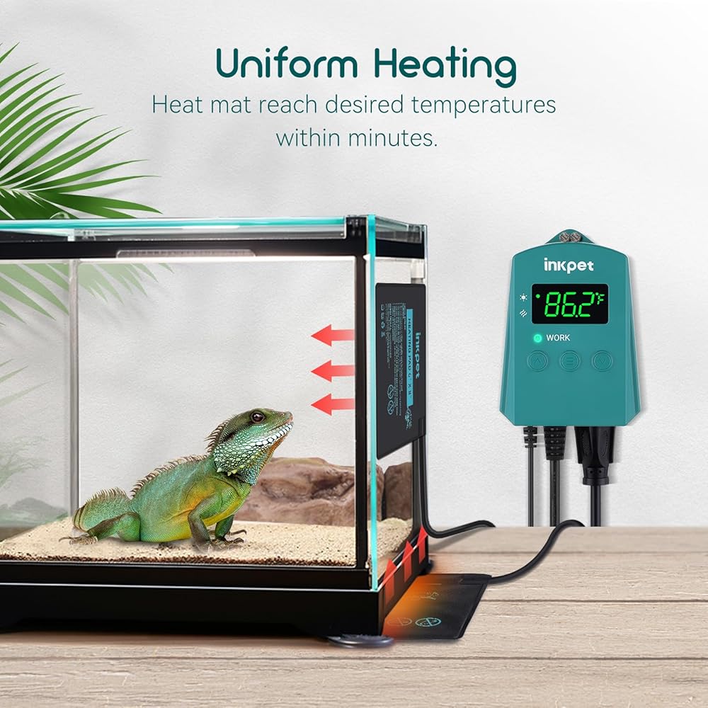 تسخين موحد: توفر وسادة تسخين الزواحف المتينة INKPET تسخينًا موحدًا ومتسقًا عند درجات حرارة تتراوح من 104 درجة فهرنهايت إلى 122 درجة فهرنهايت (40 درجة -50 درجة)، وهي مثالية لأنواع الزواحف.