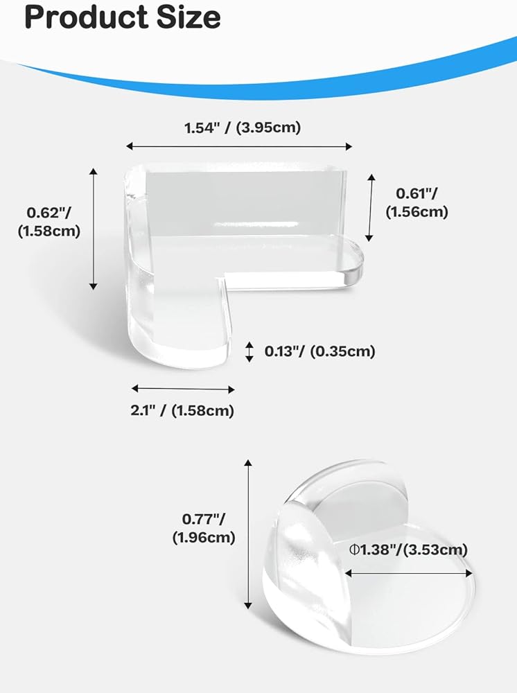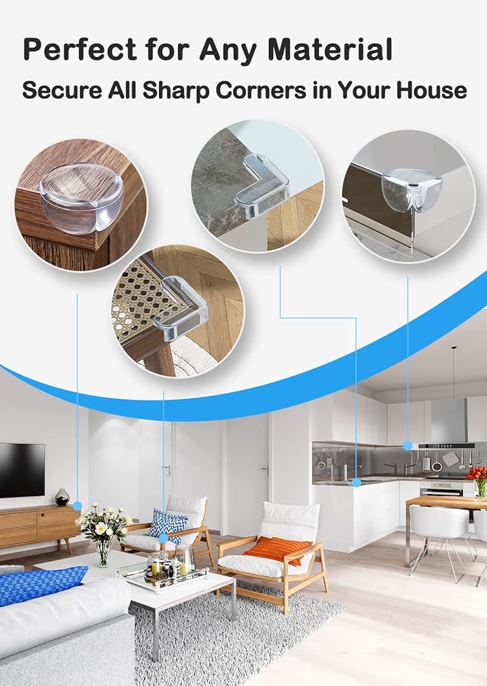[تناسب معظم أنواع الأثاث] تتضمن العبوة شكلين، واقيات حماية للأطفال على شكل حرف L وعلى شكل O. جميع أشكال واقيات رأس الأطفال مناسبة لمعظم الأثاث الداخلي، ويمكن تركيبها على زاوية طاولة غرفة المعيشة، والأريكة، وطاولة السرير الجانبية لغرفة النوم، والخزانة، وأغطية المطبخ وغيرها من الأماكن. التصميم الشفاف يتكيف بشكل مثالي مع مجموعة متنوعة من الأنماط الزخرفية للمنزل.