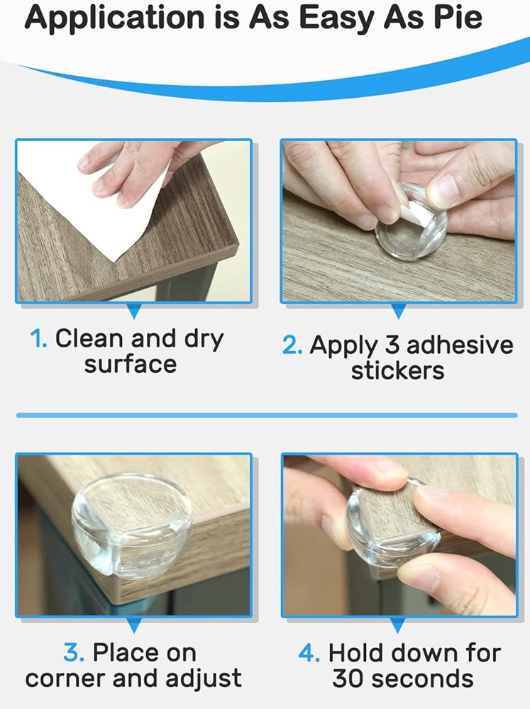 [دقيقة واحدة للتثبيت] ثلاث خطوات فقط، أولاً، قم بتنظيف سطح غبار الطاولة، ليكون سطحًا جافًا ومتسخًا؛ ثانيًا، قم بلصق الشريط على واقيات الزوايا المقاومة للطفل وقم بتقشير الملصقات، ثم لصقها على زاوية الطاولة؛ ثالثًا، اضغط لمدة 30 ثانية بعد اكتمال التثبيت. كما أنه سهل الإزالة، باستخدام مجفف الشعر الساخن لمدة 30 ثانية، يمكن إزالة الغراء الذائب، دون ترك أي بقايا غراء، ولا ضرر للأثاث.
